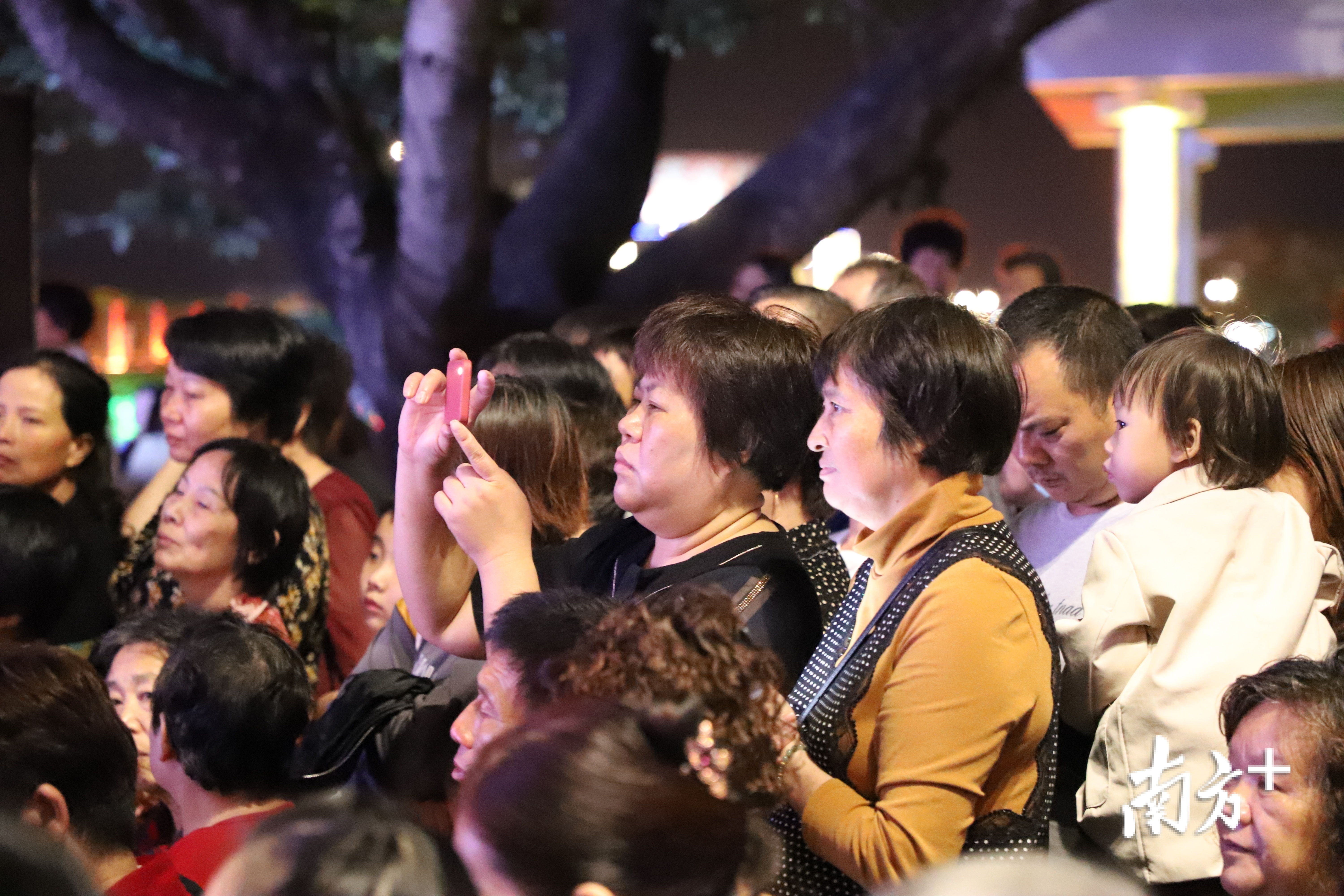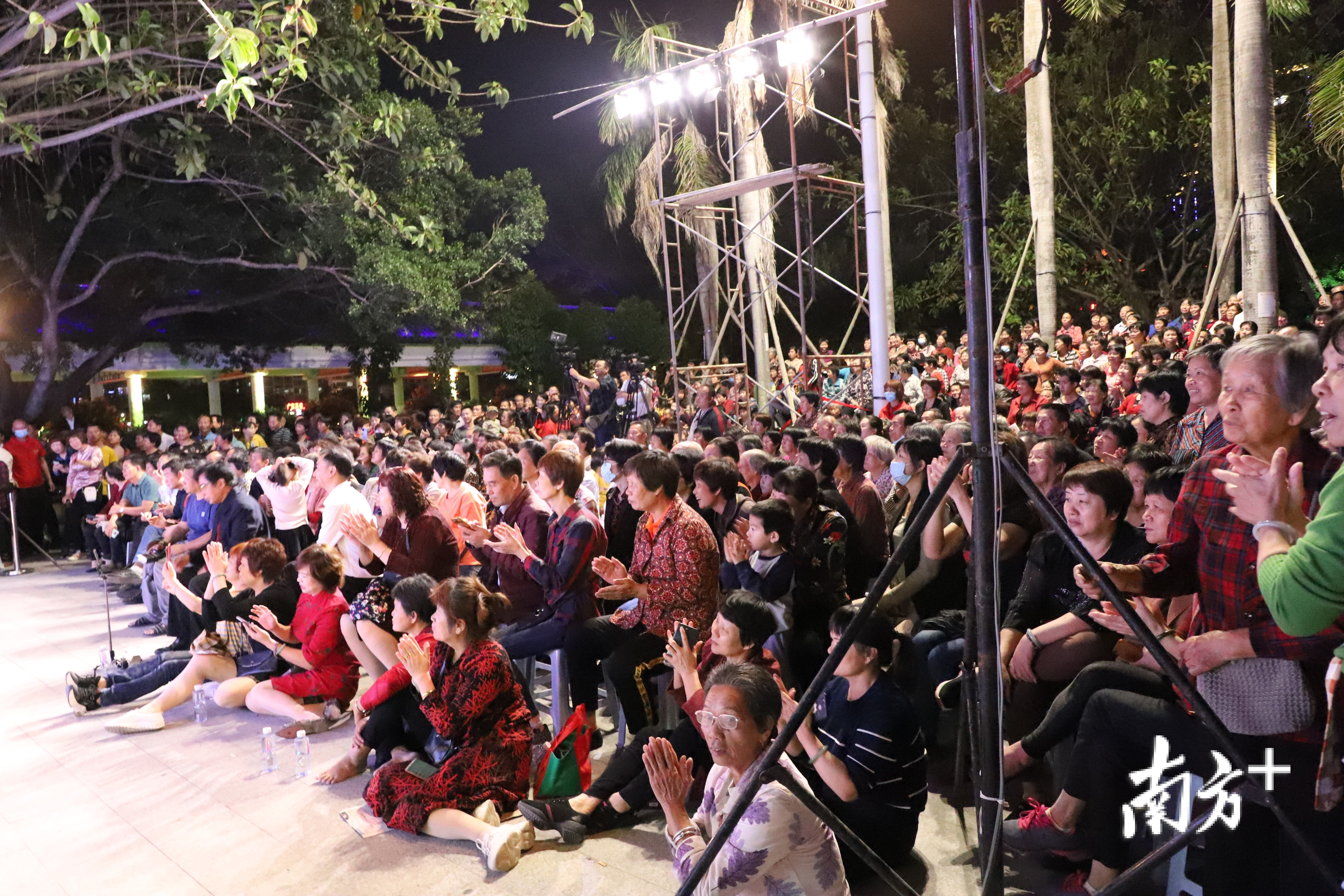 当天晚上7点,演出尚未开始,滨河公园已是人山人海,无数票友、群众早早来到现场,抢占观看的最佳位置。“咚咚咚”,伴随着熟悉的潮州大锣鼓《庆丰年》的乐器声,演出正式开始。《江姐》《韩琪杀庙》《辞郎洲》等著名的潮剧经典曲目轮番上演,专业演员、票友的倾情演出,不时赢得观众的阵阵掌声和喝彩。
