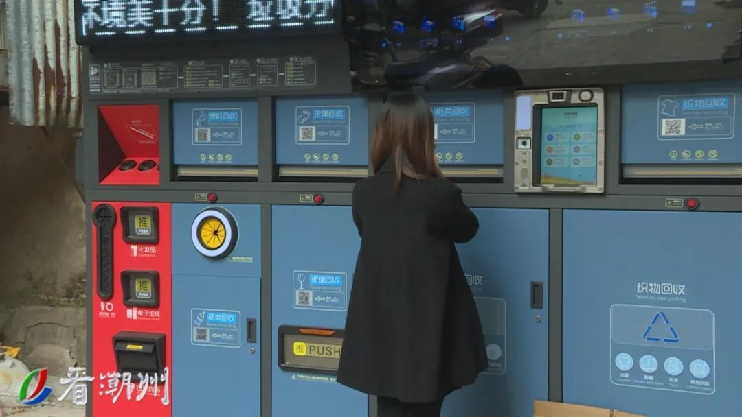 眼前的智能回收箱设计了多个投递口,可收集织物、纸张、金属、玻璃、塑料等可回收物。采访中,不少街坊带着家中的废弃物品前来投放、变废为宝。