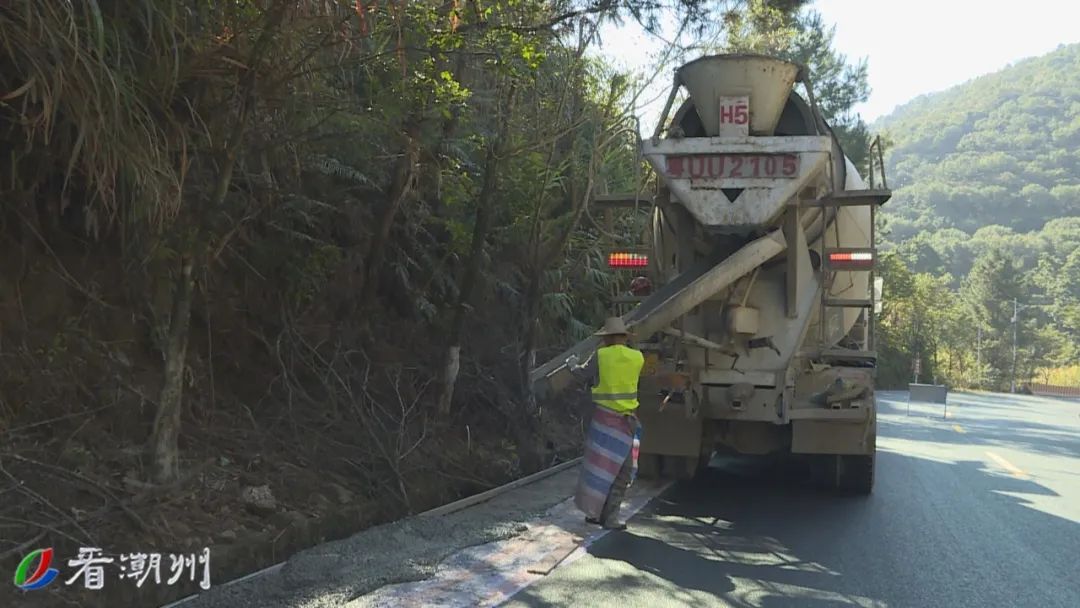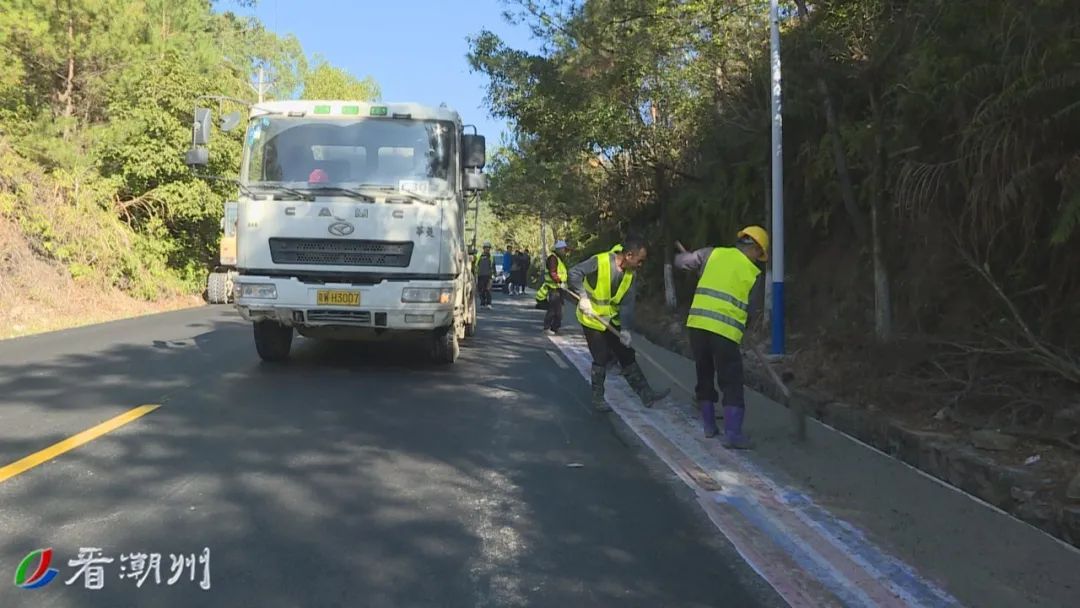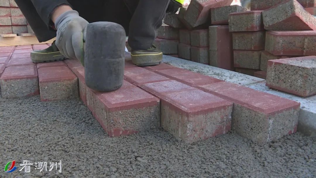 目前,项目全线沥青铺设已完成,沿线与各村交界路口工程完成90%工程量。在文祠段,多名工人正在摊铺一侧路肩的混凝土,另一侧路肩也在挖土修整中。而在凤凰镇区,工人正在加紧铺设路肩步道砖。
