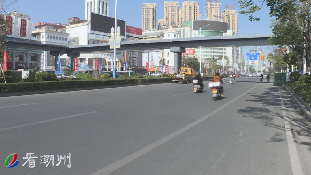 潮州大道大润发路段交通繁忙,上下班高峰期容易出现交通拥堵,行人横穿马路乱象时有发生。为改善这一状况,保障行人安全。去年11月上旬,该路口开始动工建设人行天桥。目前,天桥已完成主体工程建设。