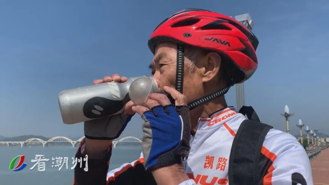 我从1973年跑步到现在还没停,每天不少于八公里到十公里。70岁的时候,第一次骑单车回潮州,走206国道,第二次80岁,骑了次单车回潮州,走105国道,第三次是85岁。