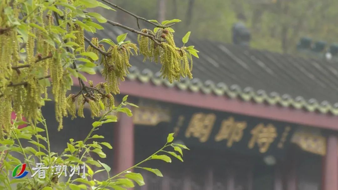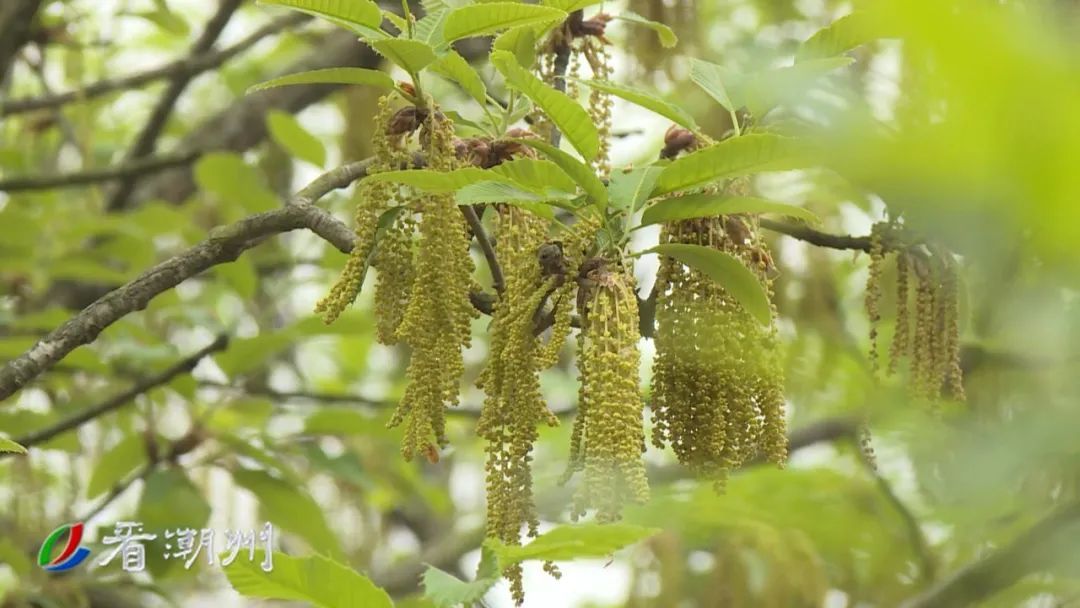 春风拂面,细雨如丝,放眼韩文公祠,草木青翠欲滴。橡木园内,一簇簇青黄色的花穗倒挂枝头,如珠串般纤巧玲珑,轻轻摇曳间,宛若无数风铃随风而动。