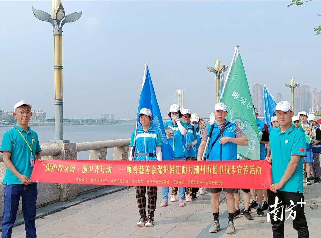 “要自觉保护好我们的‘母亲河’韩江。”“扔垃圾要注意先做好分类。”“喝完水请自觉把矿泉水瓶带走哦。”……5月9日,潮州市韩江边出现了一群“红马甲”“蓝马甲”的身影。当天,潮州市唯爱慈善会开展主题为“保护母亲河,创卫齐行动”的活动,百余名志愿者沿韩江边徒步六公里,通过发放宣传手册、悬挂宣传横幅、清洁江边栈道等方式,引导市民自觉保护环境,为韩江送上一份特殊的“母亲节”礼物。