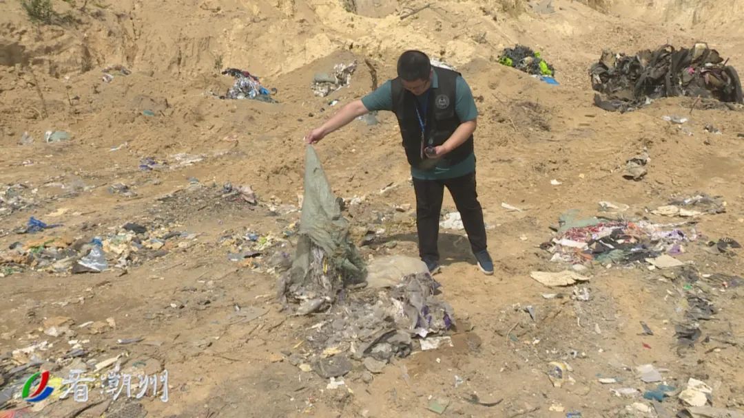 市生态环境局执法监督科科长张世镇:我们立马出动,密切进行跟踪,最后发现现场有7辆外地牌的大货车运载废物,废物里面的种类主要是工业废物和生活垃圾混在一起,倾倒在铁铺镇界内的金石镇远征场这个地方。