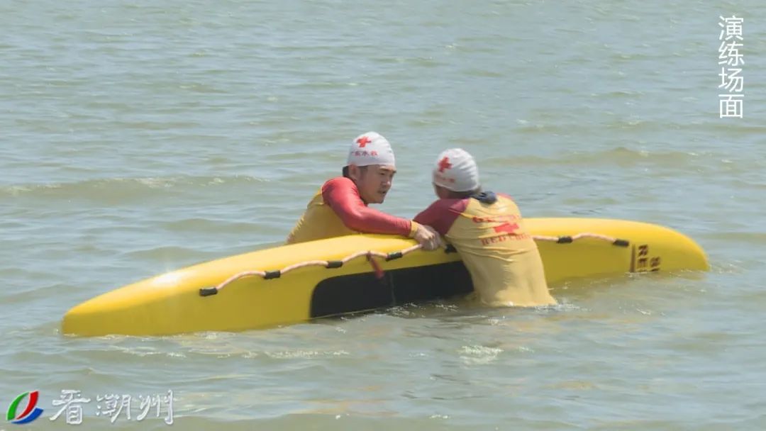 演练模拟了市红十字救援大队队员在韩江上发现有人溺水,利用救生板和急救板将溺水者迅速救上船艇。队员技能娴熟,配合默契。