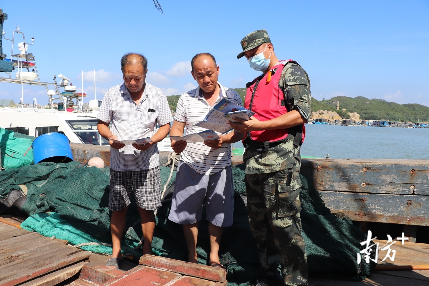 上午10时,联合工作组前往辖区柘林码头、三百门码头开展开渔前渔船安全知识及防疫工作宣传,登上渔船帮助渔民细致查看船上救生衣、灭火器等救生消防设备装配、功能状况及食物准备等情况,并向渔民发放《中华人民共和国海警法》宣传手册和安全生产手册,耐心为渔民讲解安全操作规程,强化渔民安全生产意识。在联合工作组的组织协调下,所有渔船安全有序驶出三百门码头和柘林码头。