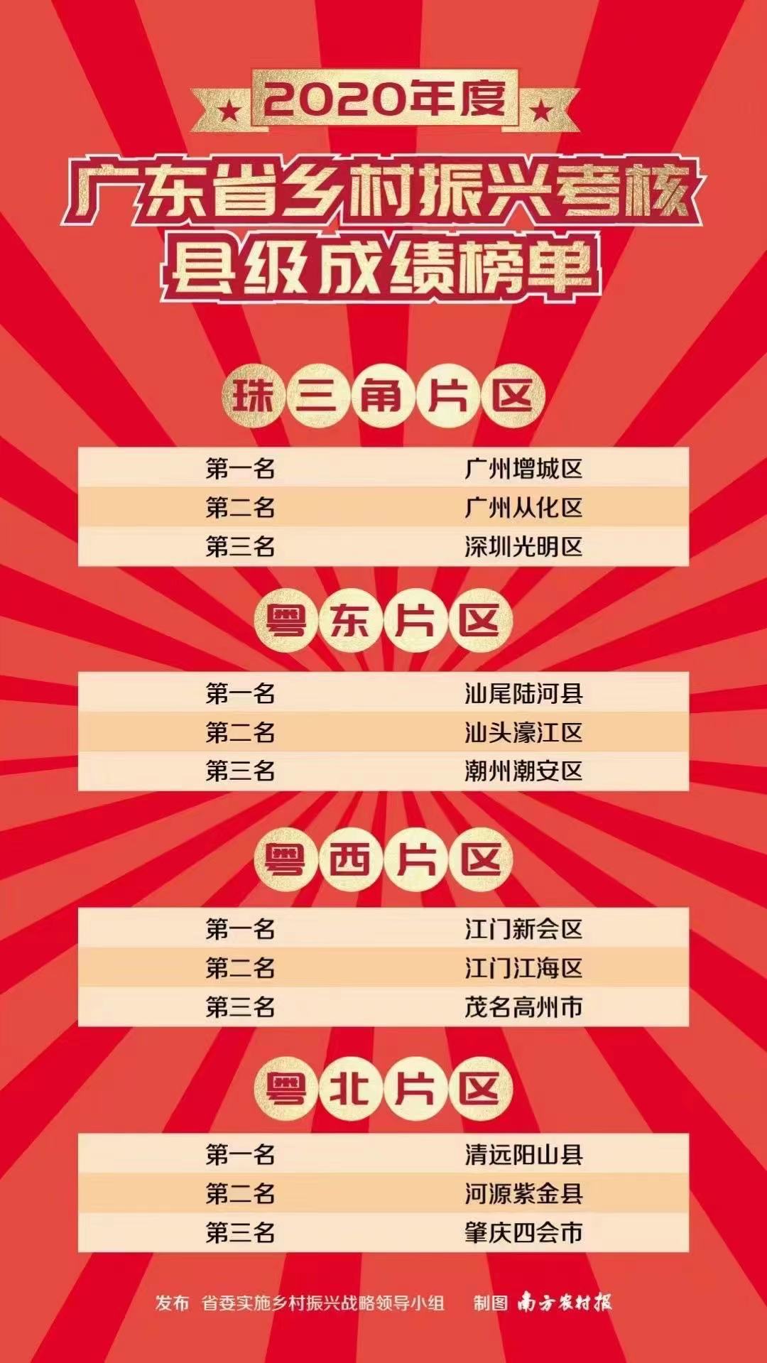 近日,2020年度广东省乡村振兴考核县级成绩榜单正式出炉,潮州潮安区榜上有名,荣登粤东片区前三名,潮州在全面推进乡村振兴工作中又添一枚新勋章。