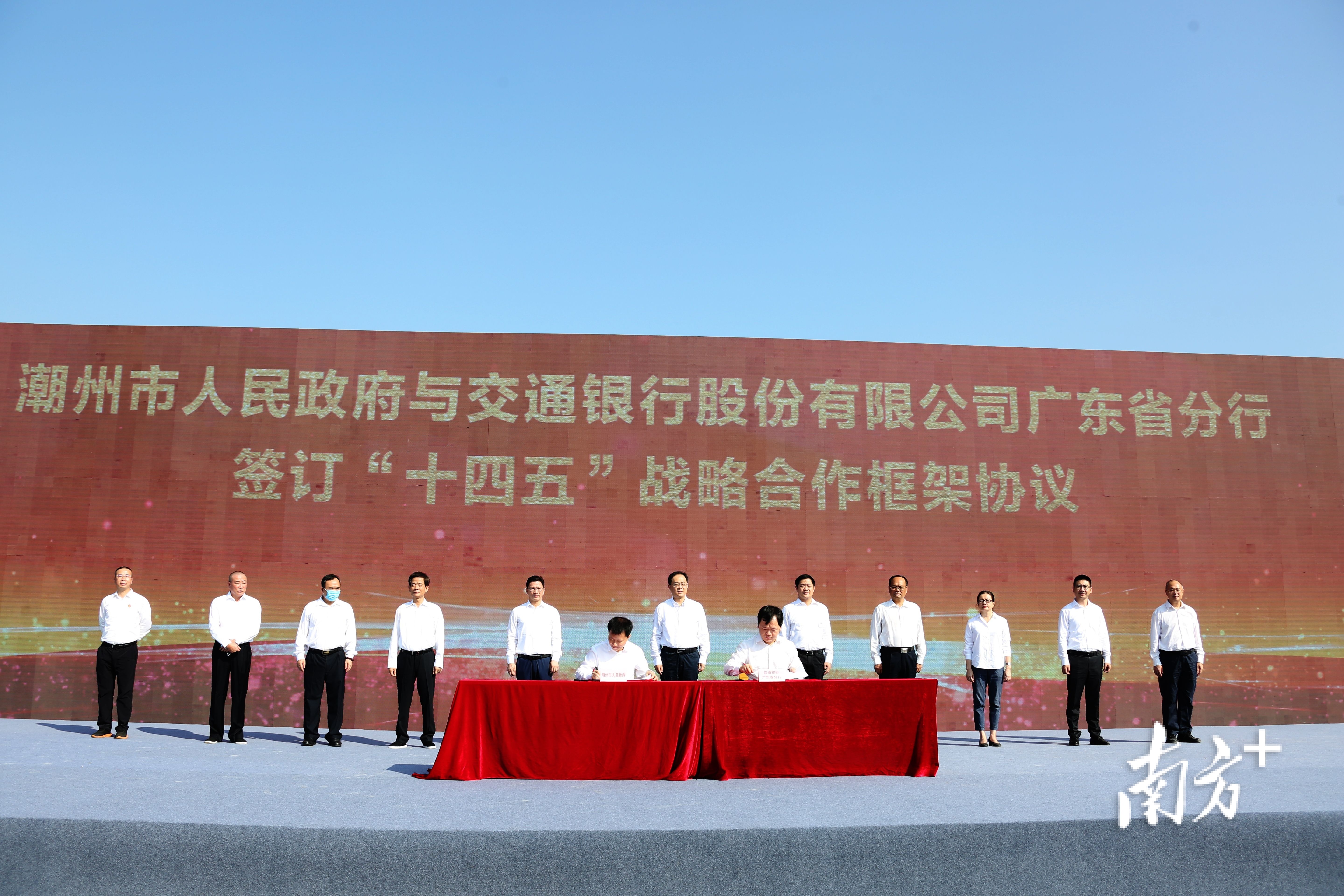 在何晓军、何广延、温金荣、林少明、陈史青、朱丹、周永龙等市领导,以及北京、上海、广州、深圳等地潮商会负责人的共同见证下,潮州市人民政府和交通银行广东省分行签订“十四五”战略合作框架协议。根据协议,交通银行广东省分行将在“十四五”期间,为潮州市优质企业和项目提供人民币500亿元的意向性支持额度;“信息高铁潮州应急中心站”等10个项目代表也现场签约落户潮州。
