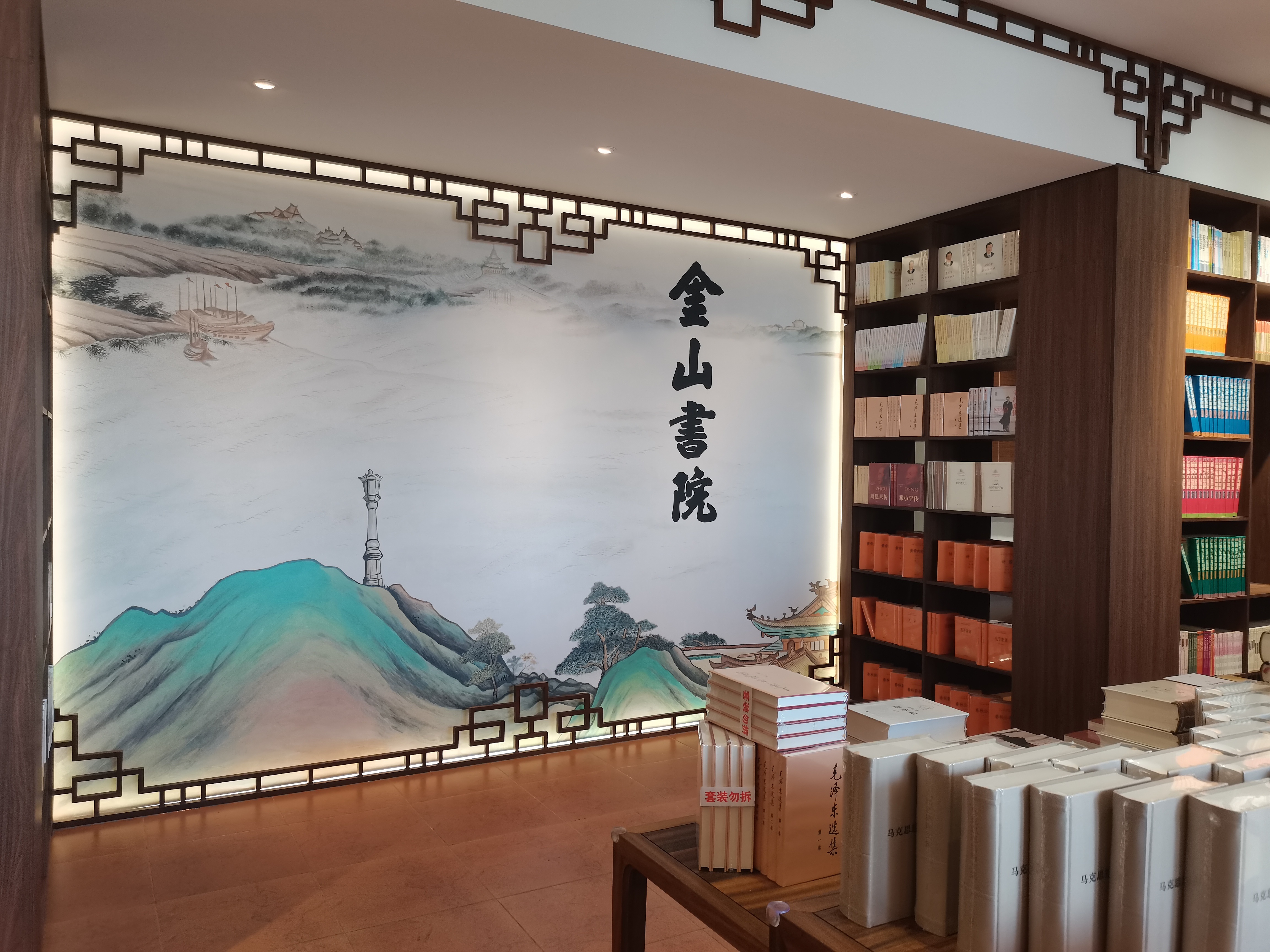 金山书院项目选址金山上的北阁佛灯景区。项目对山顶的主体建筑浪西楼进行整体改造,建成场所面积为1018平方米,共有6200册图书。一楼为时尚阅读空间,面向公众开放;二楼为多功能文化讲座厅,将不定期举办学术研讨、文化交流、公益讲座、演讲会等活动;三楼中华善本馆收藏《中华善本百部经典再造》,含经、史、子、集4部共202函,1152册。此外,北阁佛灯景区也同步进行美化、绿化、亮化改造提升,浪西楼边设置自助咖啡免费供应,游客可在休闲区品饮阅读,赏韩江美景。