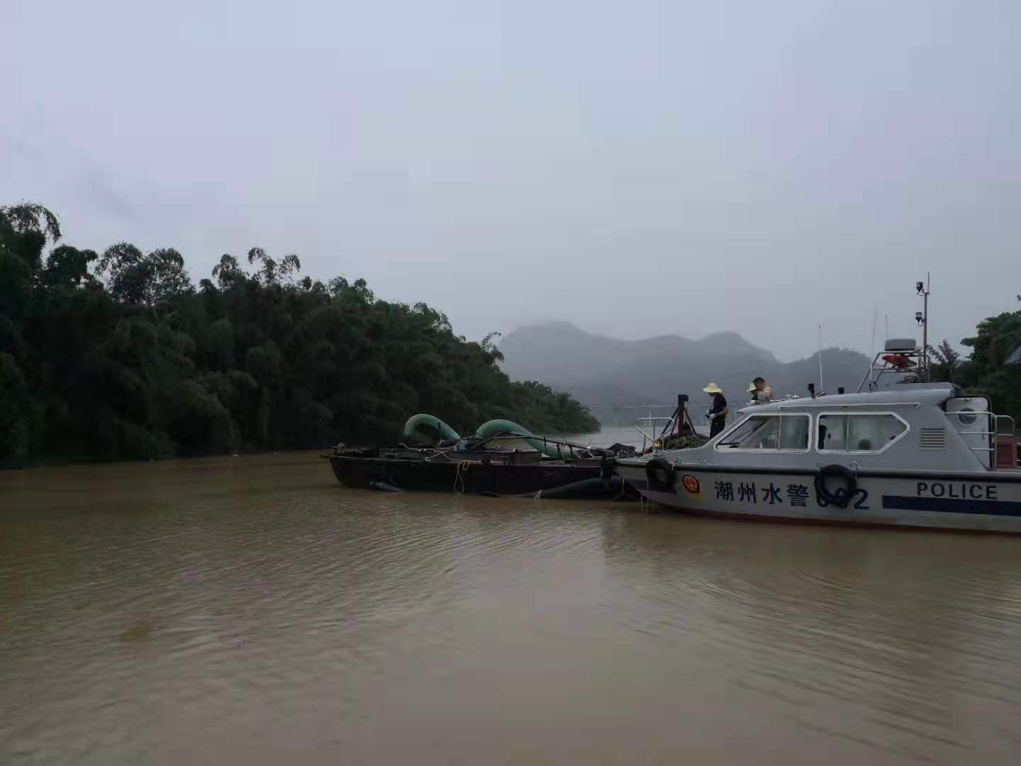今年来,潮州公安机关结合近年扫黑除恶专项斗争工作实际,始终盯紧自然资源领域黑恶犯罪活动,全面强化线索摸排和经营打击。今年初,潮州市公安局扫黑办在工作中掌握到韩江河岸潮安区赤凤韩西、归湖绿竹区域的两个合法经营堆砂点,疑似存在暗地从事非法盗采河砂违法犯罪活动。线索层报后,潮州市公安局领导高度重视,潮州市副市长、潮州市公安局长周岳林指示该局扫黑办迅速成立专案组,加强线索核查和深挖打击,严厉打击非法采矿活动。