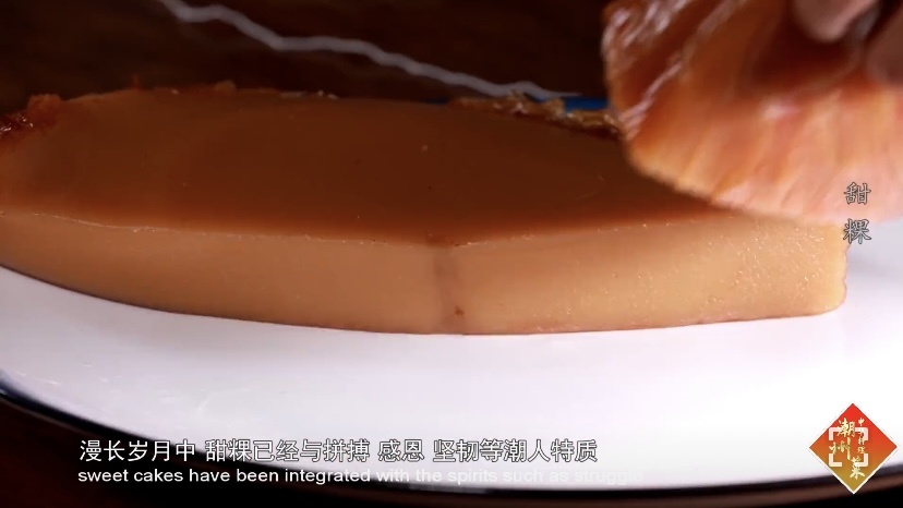 纪录片不仅呈现了这些美食的制作过程,更穿插了人物故事,植入美食背后的潮州侨乡文化元素,多角度展现潮菜的文化内涵和潮人的乡土情怀。如《甜粿》这一集中便提到经久耐放的甜粿曾是潮人漂洋过海必带的干粮,该短片以粿饼店老板谢彦辉的故事展开,讲述了其家中长辈带甜粿过番的过往,再呈现了甜粿的制作过程,将美食与侨乡紧密联系起来,唤起了海内外潮人的侨乡记忆——甜粿已不仅是一种传统美食,更是海内外潮籍乡亲一抹挥之不去的乡愁。