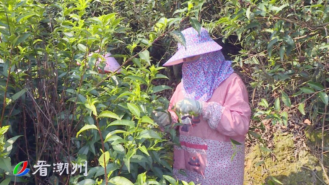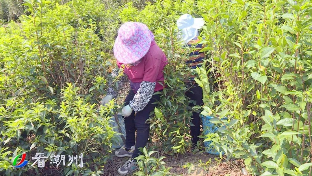 在潮安区凤凰镇东兴村的茶园中,茶田层层叠叠,株株茶树吐露新绿,勾勒出一幅美丽的春日画卷。趁着晴好天气,采茶工穿梭茶园间,娴熟地采摘着今年第一批春茶。