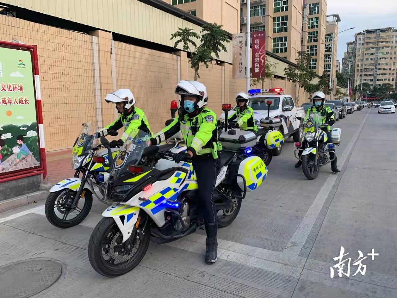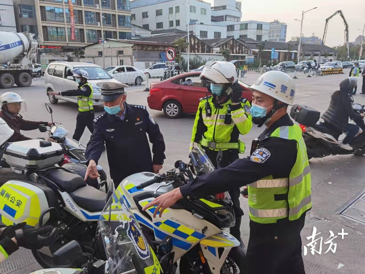 “铁骑交通劝导巡逻队”首日上路,潮州市公安局党委委员、副局长邱华生等在路面进行现场指导。他表示,铁骑交通劝导巡逻队试行第一天,受到市民广泛赞誉。铁骑队员能够克服天气炎热,服装磨合等困难因素,以最快速度投入路面开展工作。接下来,将进一步制作相关规范台账,建立文明用语手册、明确巡逻路线等系列规章制度,更好地保障铁骑运行和管理。