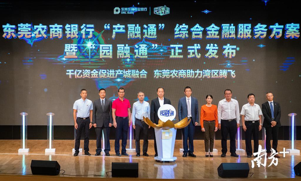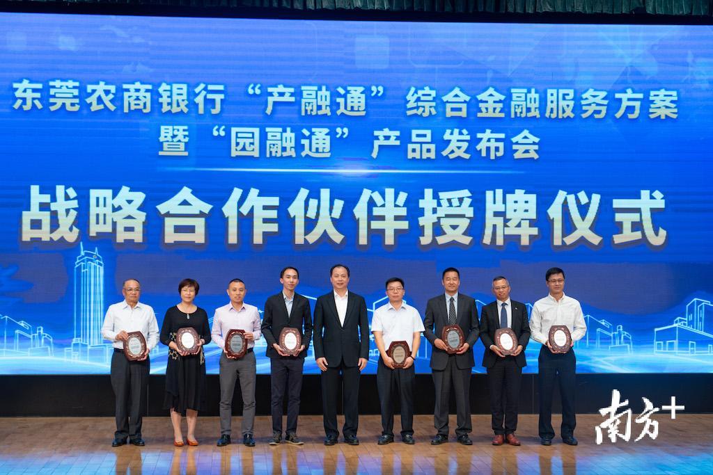 在活动现场,东莞农商银行发布了支持产城融合行动规划及“园融通”综合金融服务方案,并向东莞多家著名企业颁发产融发展战略合作牌匾。