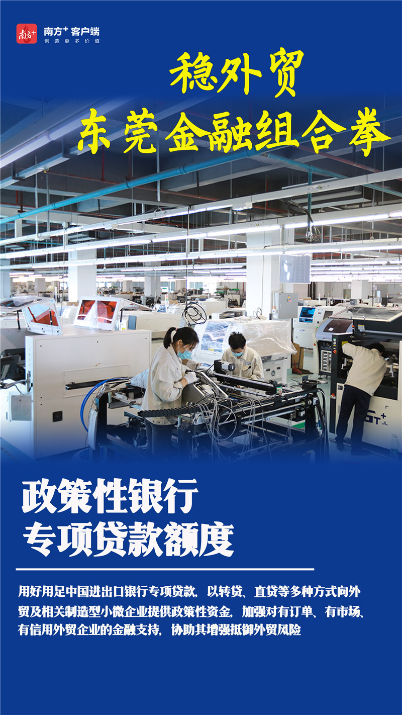 4月27日,东莞发布“稳外贸20条”,全力帮助外贸企业保订单、稳订单、拿订单,全力稳定外资外贸的基本盘,推动东莞外向型经济高质量发展。聚焦到金融领域,从用好用足货币政策工具、争取政策性银行专项贷款额度、引导银行机构加大信贷支持、提供出口信用风险保障支持四个方面,为受疫情影响的外贸企业提供了真金白银的“红包”。