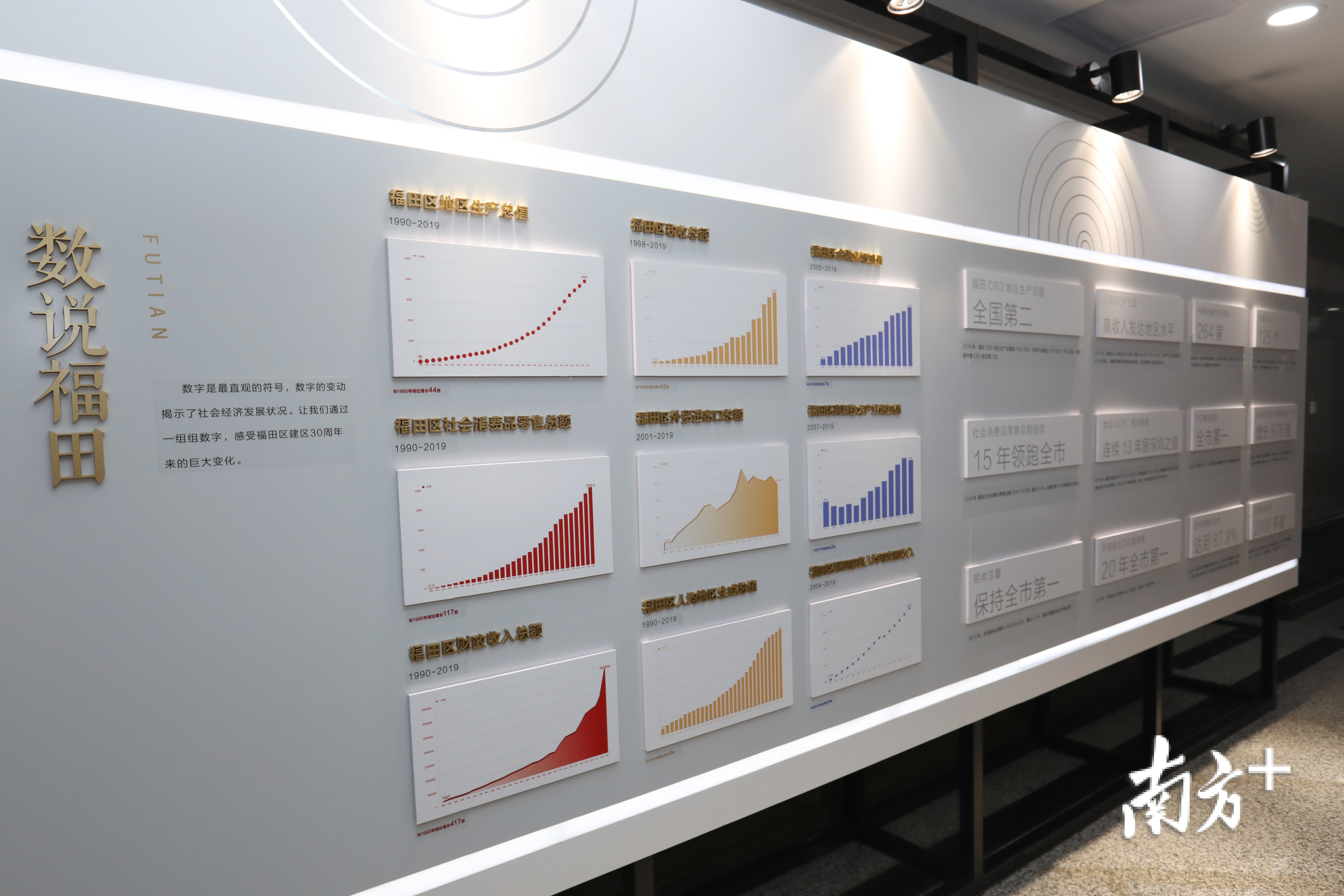 从数据来看,30岁的福田也发生了翻天覆地的变化,福田区地区生产总值从1990年的39亿元到2019年的4547亿元,增长44倍;2019年福田CBD地区生产总值、地均产值位居全国第二位;福田地均GDP、地均税收,连续13年位居深圳首位。