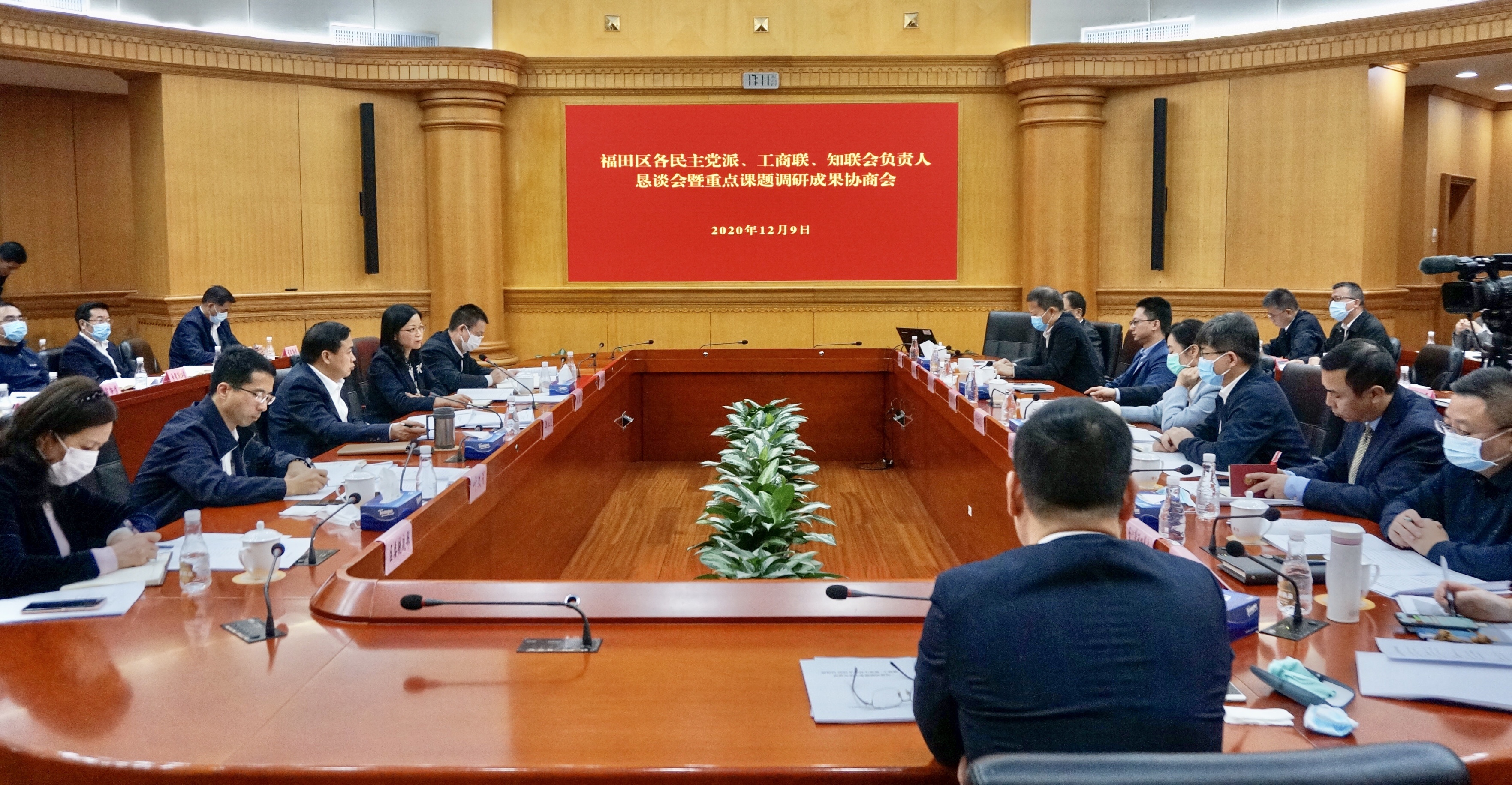 12月9日,中共福田区委召开民主党派、工商联和知联会负责人恳谈会暨重点课题调研成果协商会,深入学习贯彻习近平总书记出席深圳经济特区建立40周年庆祝大会和视察广东、深圳重要讲话重要指示精神,一体学习贯彻党的十九届五中全会精神,聚焦福田“十四五”规划及新30年发展,共同协商、推进调研成果转化。区委书记郑红波出席会议并讲话,区领导刘俊琳、叶文戈参加。
