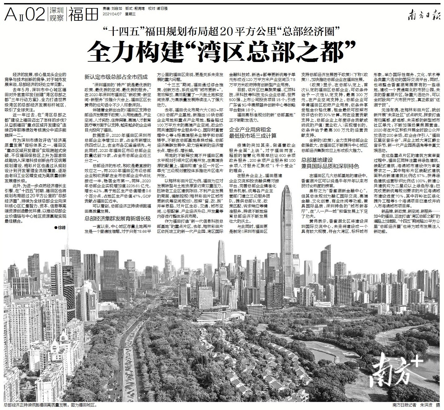 新品牌、新政策、新空间、新服务……如今的福田,正在打造“湾区总部之都”的道路上加速跑,“十四五”期间超20平方公里“总部经济圈”也将为城市发展注入新动能。