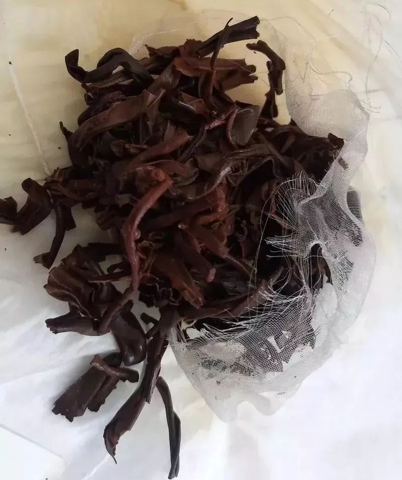 茶底:剪开纱袋观叶底,叶张舒展、尚润,无碎屑,无梗。