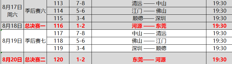 珠江啤酒·2019广东省男子篮球联赛季后赛第五轮今晚打响。本轮分为四强战次回合、5-8名排位赛两个组别。在备受关注的四强战中,河源客场13分力克深圳,队史上第一次进入总决赛。东莞再次大胜顺德,连续第五年进入总决赛。在5-8名排位赛中,江门客场战胜中山,本赛季对中山四战全胜。佛山主场大胜清远。