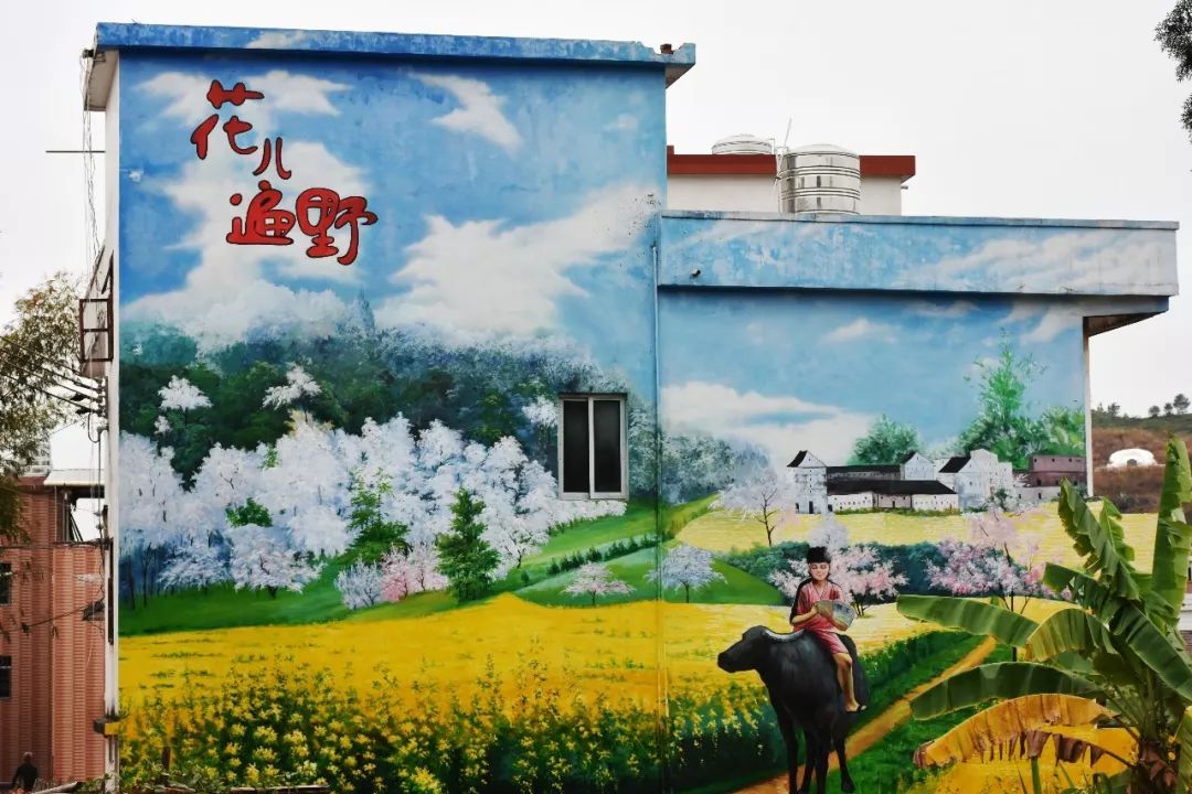 在黄岭村内,一面面色彩鲜艳、栩栩如生的墙绘,刻画着新时代人民的幸福生活。