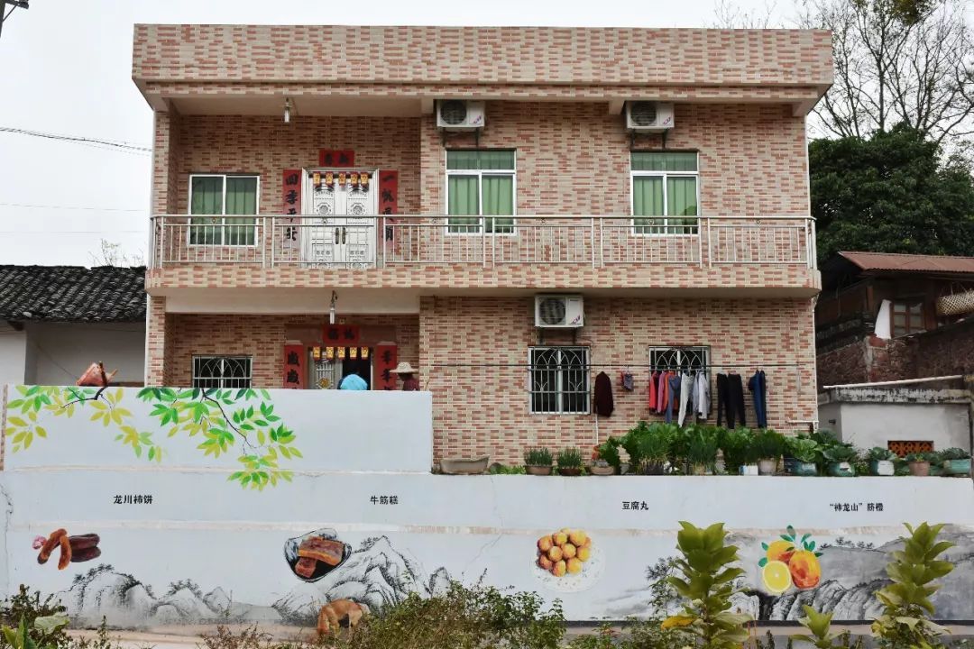 牛筋糕、豆腐丸、柿饼等龙川本土特色美食,妆点着叶雪梅家的围墙。