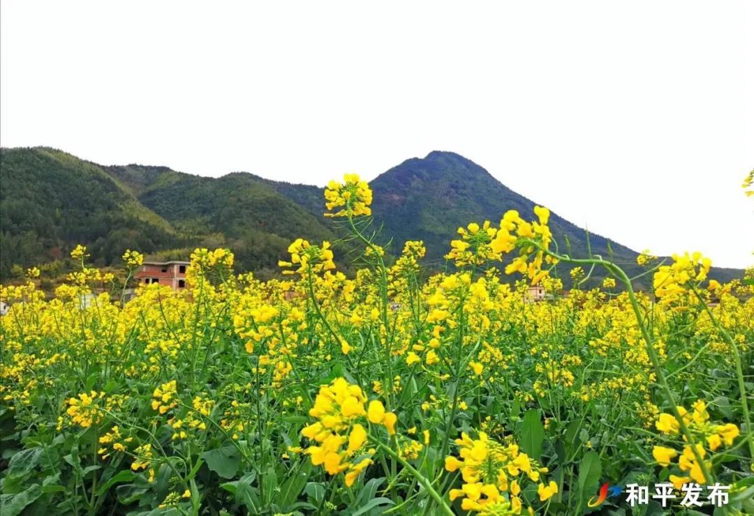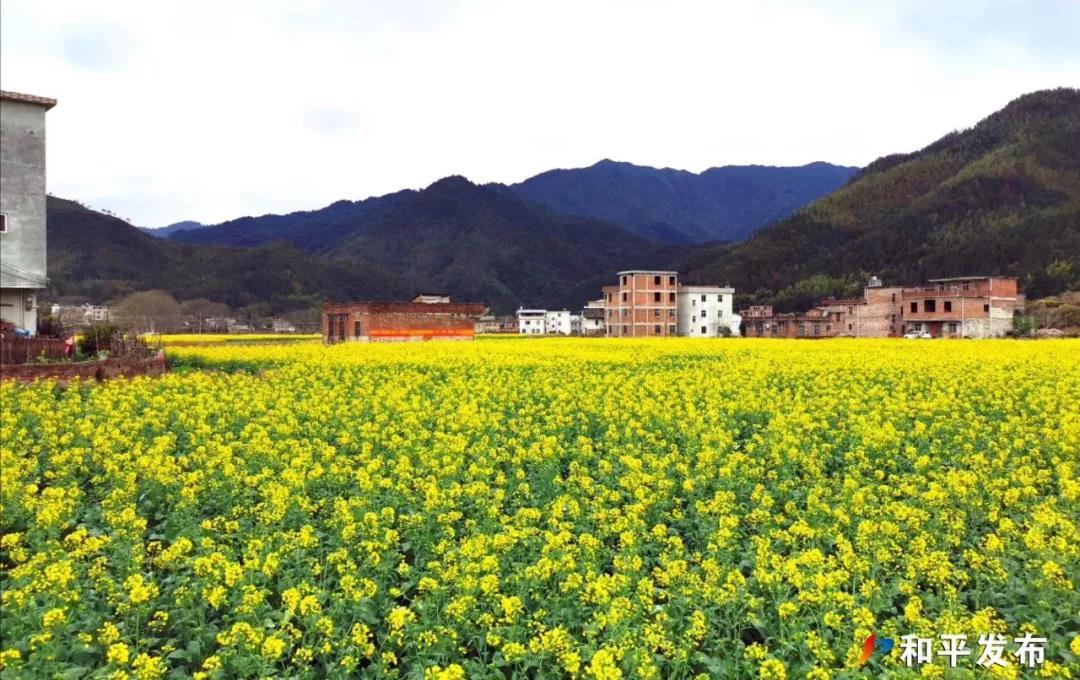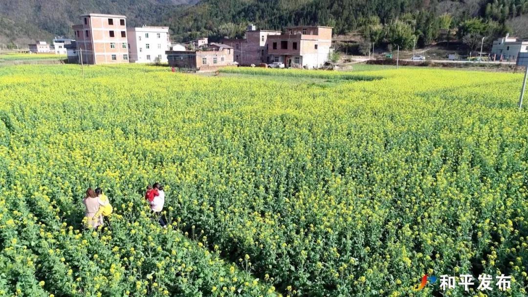 在浰源镇山下村,放眼望去,数百亩的油菜花竞相绽放,瞬间让整个田野春意盎然。