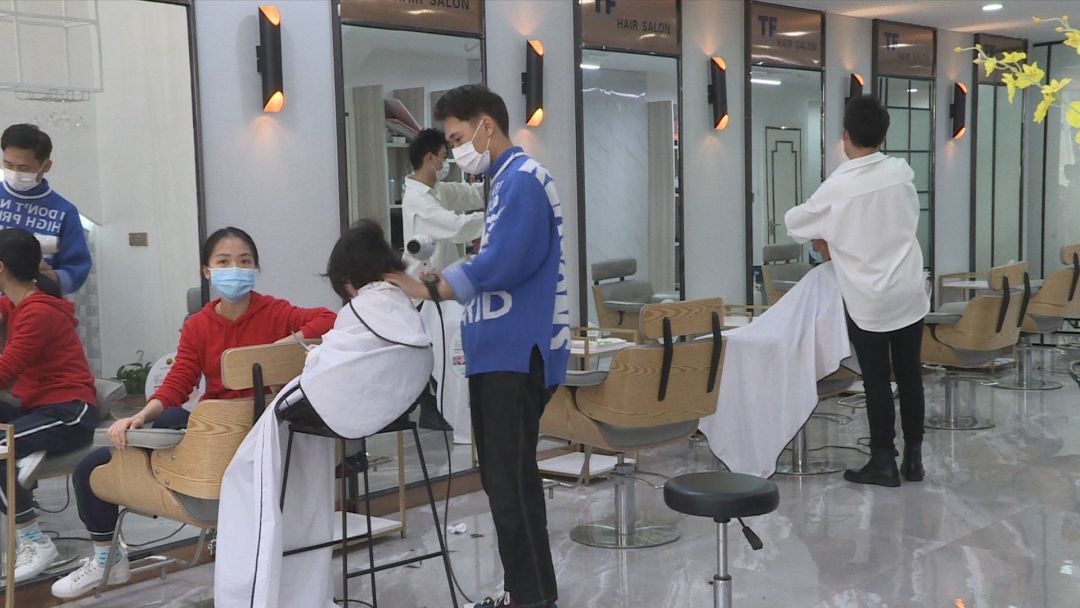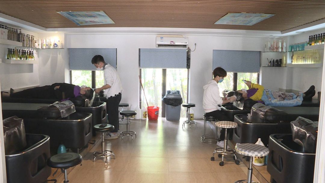 记者走访市区发现,不少美容美发店已经开始营业,在市区永和西路的一家美容美发店内,二月二这天,到店的顾客与往年相比大幅减少,他们零散地坐在店里,与他人保持着一米左右的距离。