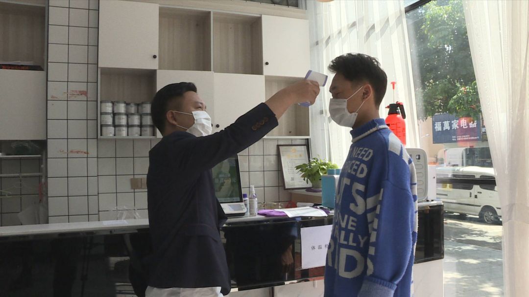 客人一进门,我们就会先测体温,然后进行登记。基本上只接待熟客,同时我们也让客人不要扎堆,如果发现客人是三四个一起来的,我们就会告诉他,你要晚一点来,或者跟他说现在接不下了。以前我们是客人来了就接,现在是客人来了我们会错开,等我们忙完了再打电话给客户,让他过来。