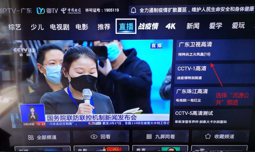2、电信或移动IPTV用户。在直播频道中选择“河源公共”频道进行观看。直播结束后可以在直播频道中进行时移回看。