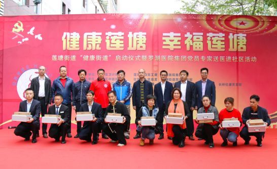 莲塘街道党工委副书记、办公室主任钟皓,罗湖区卫健局副局长刘岭,莲塘街道党工委委员、民生事务部部长陈新辉,莲塘街道民生事务部副部长王习完,罗湖医院集团社管中心党支部书记、院长林锦春,罗湖医院集团社管中心党支部副书记陈旭嘉,广东省乐心医疗电子股份有限公司经理岑松海,深圳广药联康医药有限公司副总经理张庭佳参加活动。