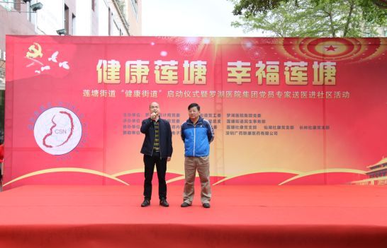 莲塘街道党工委委员和民生事务部部长陈新辉与罗湖区卫生健康局刘岭副局长共同宣布莲塘街道创建“健康街道”活动正式启动。