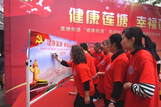 莲塘辖区居民和医护人员一起宣誓承诺“我的健康我负责”。多位来自莲塘社区的居民代表进行健康宣誓和签名,承诺坚决做到:
