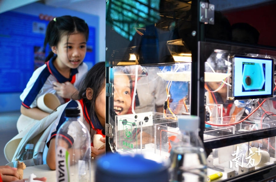 科技作品展览区成为互动体验的热点。智能物流搬运、机器人机器狗跳舞、垃圾智能分类等项目,让孩子们在欢声笑语中学习,在动手实践中感悟。有学生表示,这是其第一次亲眼见到并亲手接触这些高科技展品,大学生哥哥姐姐的耐心讲解激发了他们对科学知识的强烈兴趣,希望未来也能亲手创造自己的科技作品。