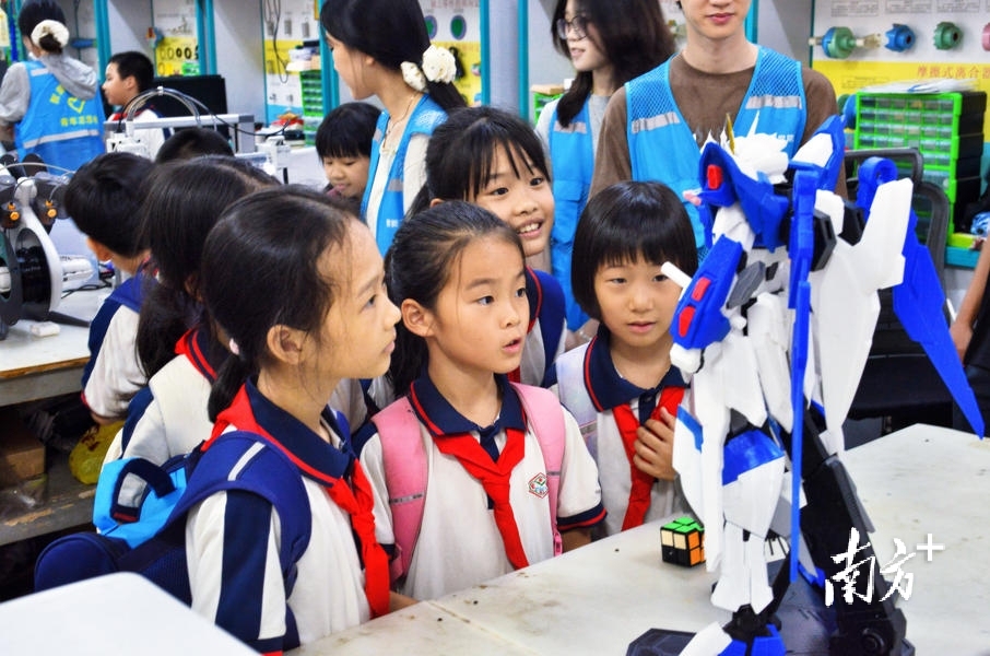 孩子们在CAD协会开放实验室欣赏3D打印作品。