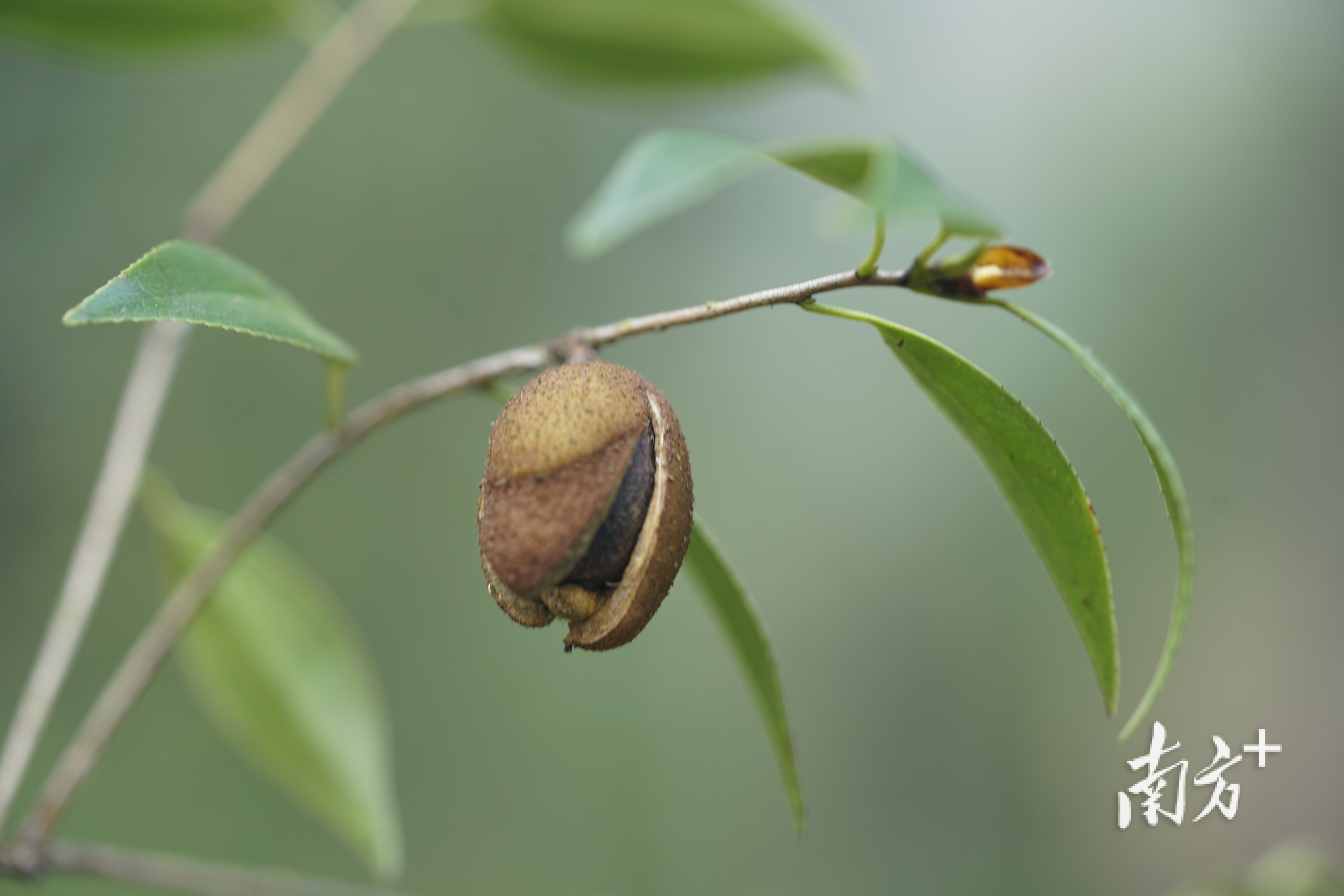 除了独特的纪念意义,“尚时茶”的价值同样突出。它不仅是丹霞山红层地貌与生物协同演化的鲜活见证,其独特的形态也极具辨识度:每年10至11月会开出白色顶生小花,散发着淡淡清香,花瓣倒卵形、先端微凹,到了11至12月则会结出近球形的果实;同时,其种子含油率具备新型木本油料植物开发潜力,花器官的清雅香气也让它拥有观赏园艺价值。目前,团队正深入开展其基因组学及化学成分研究,为其双重价值的深度开发奠定基础。