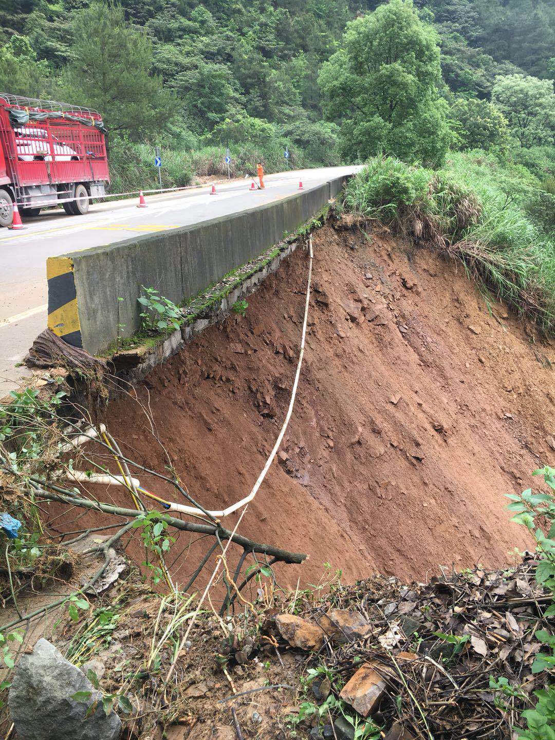 另外,韶关市乳源县东坪镇G240线(原坪乳公路)洋碰处(K2272+684)由于受近期连续强降雨影响,右侧边坡出现严重下塌,造成路面掏空,影响行车安全,于4月26日上午9:30实施交通封闭。现在已做好围蔽,疏导交通,过往车辆可绕行京港澳高速和X358线。该局有关负责人表示,由于此路段塌方处地形比较复杂,要等天气稳定后,经专家研究设计修复方案再进行修复工作,通车时间待定。