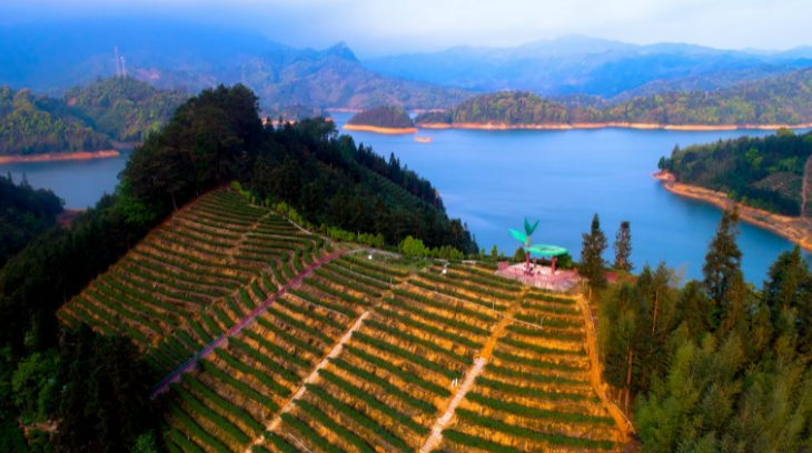 如今,碧绿的茶山、清清的河水、蓝天白云下的鳞次栉比,构筑成鱼皇村秀美的山水风光、美丽宜居家园。