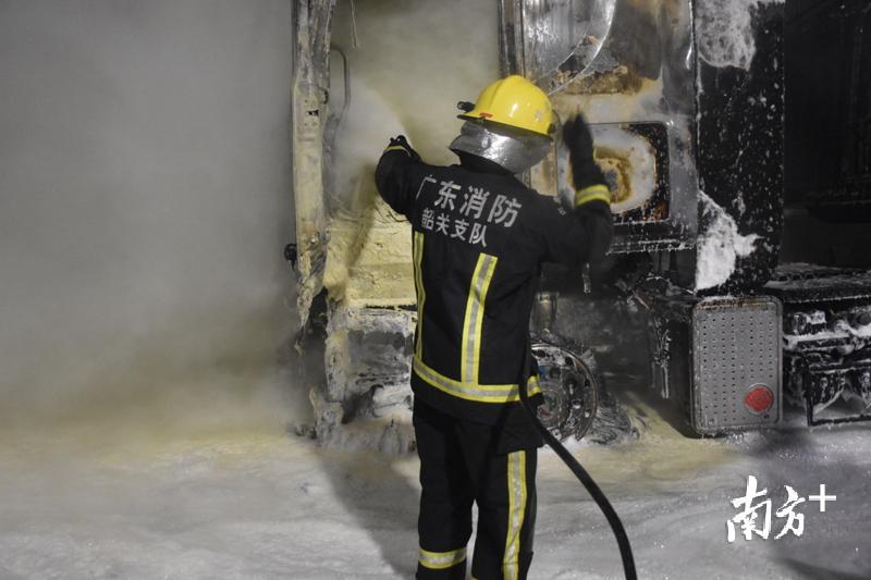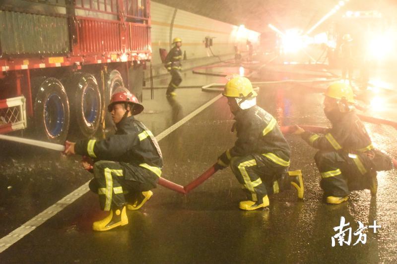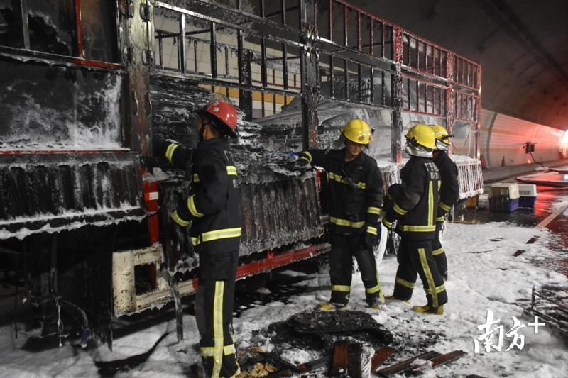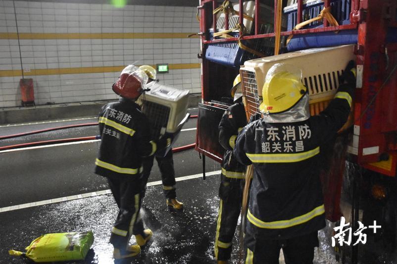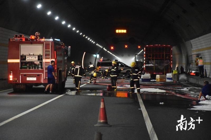 7月31日中午12时40分,韶关乐昌市消防大队乐昌中队值班室接到支队119指挥中心报警称:位于辖区高速隧道里一辆货车起火,情况十分危急。接到警情后,乐昌中队立即出动4辆消防车共18名指战员赶往现场实施处置。