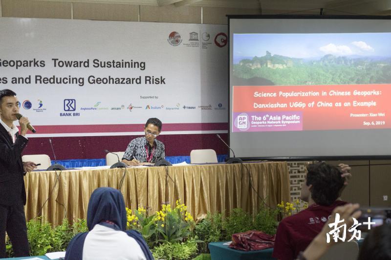 会议期间,“丹山碧水,人间仙境”主题的丹霞山展位吸引了大批参会代表和当地市民参观,丹霞山代表团精心准备的上千份多语种画册、地图和公园特色纪念品备受欢迎,3位年轻团员积极主动用英语向公众介绍丹霞地貌科研科普进展、丹霞山世界地质公园社区可持续发展成就,丹霞山特有的科普工作模式引起了世界地质公园网络成员代表和国内外专家的高度赞赏。其中,联合教科文组织世界遗产中心地质科学家保罗·丁沃不仅专程来丹霞山展台了解地质遗产保育情况,还专门参加了丹霞山代表的专题报告会,他表示将把丹霞山的经验做法报告给世界遗产中心,推动更多国家地质学家关注丹霞地貌研究、保护和利用。印尼文化部长及龙目岛当地政府官员等也纷纷来到展位交流。