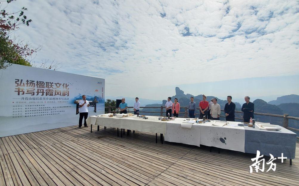 2019年10月18日上午,丹霞山楹联获奖作品现场书写活动在韶关市丹霞山景区韶音亭举行。韶关市委宣传部、市文广旅体局、丹霞山管委会、市旅游发展投资集团、市书法家协会、市丹霞文化旅游开发公司等多家单位参加了本次活动。