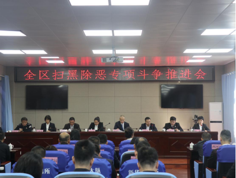 会议分两个阶段进行。第一阶段召开全区扫黑除恶专项斗争推进会,会上,武江区纪委监委、区委组织部、区法院、区检察院、区公安分局、区司法局等单位负责人就本单位、本系统如何开展扫黑除恶专项斗争工作进行了发言,并就如何贯彻落实全国扫黑除恶专项斗争第2次推进会精神和省、市扫黑除恶专项斗争视频会议精神进行了表态,一致表示将压实本部门责任,出重拳、强措施,推动扫黑除恶专项斗争工作落到实处。武江区委常委、政法委书记、区扫黑除恶专项斗争领导小组副组长、办公室主任黄向阳总结本区扫黑除恶专项斗争以来的成效和做法,分析当前斗争形势,重点部署了第四季度工作。