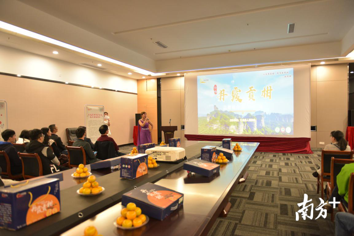 同时,丹霞贡柑被指定作为韶关市优质特色农产品代表在农博会上召开品牌推介会。推介会上通过丹霞贡柑的特色特点、种植规模、产业规模、品牌建设、logo及卡通形象设计及使用、品质控制保障及发展前景这几大方面对丹霞贡柑进行了全面介绍,让到场的嘉宾及观众能够对丹霞贡柑留下深刻印象。