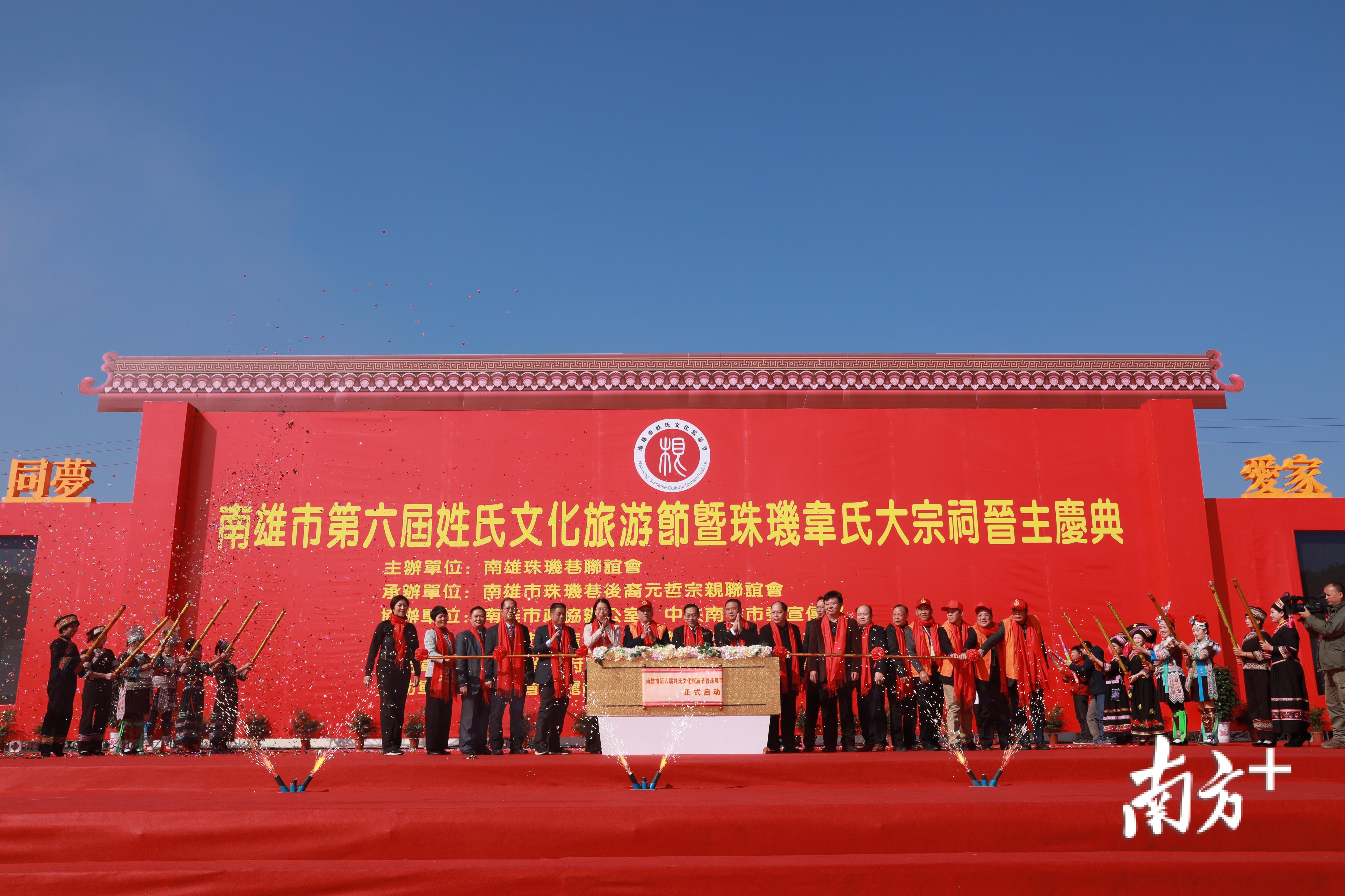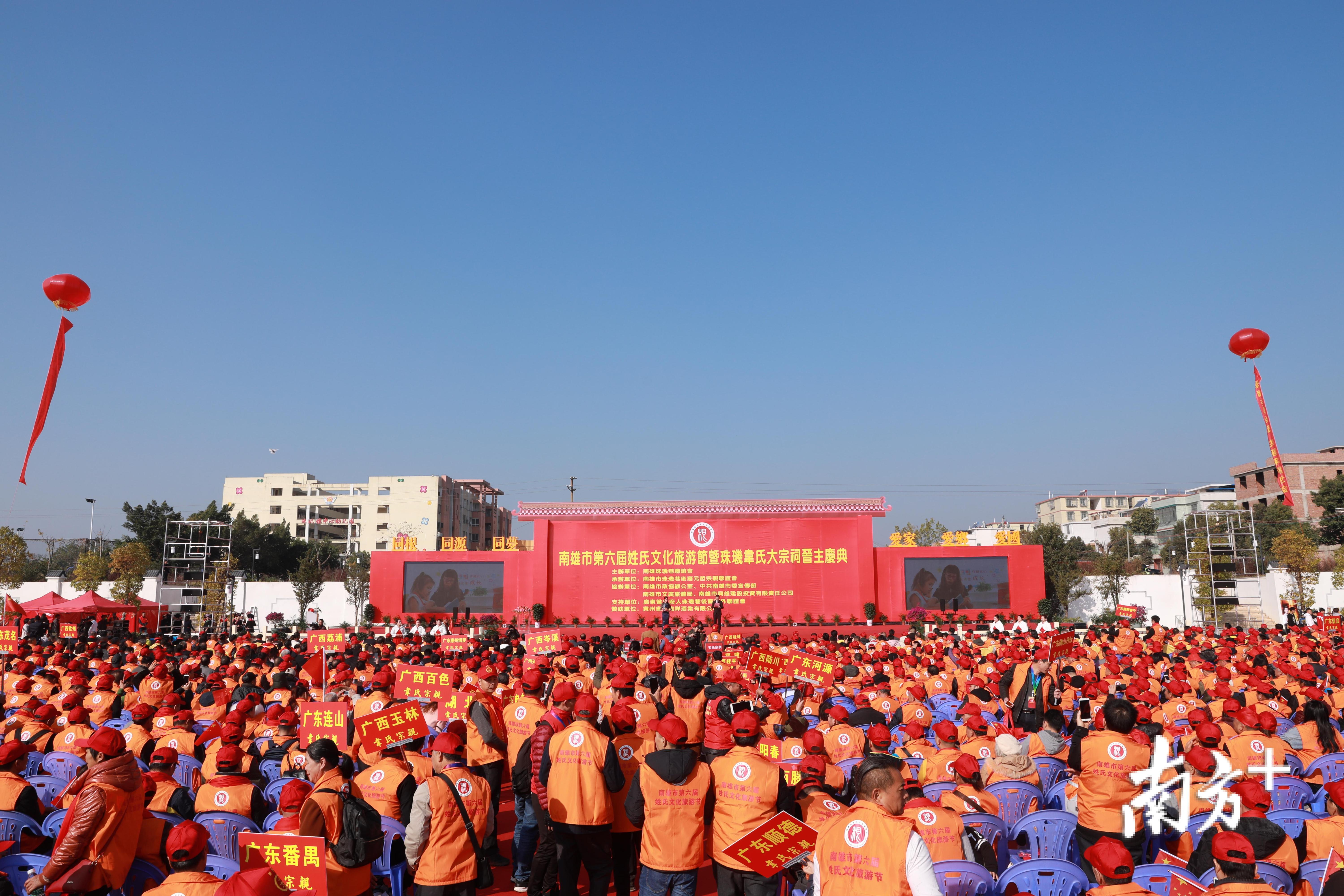 12月7日,主题为“同根·同源·同梦,爱家·爱乡·爱国”的韶关南雄市第六届姓氏文化旅游节暨韦氏大宗祠晋主庆典在该市珠玑古巷举办,来自海内外的4200多名珠玑巷后裔欢聚一堂,领略千年珠玑的人文底蕴,欣赏生态名城的大美风光,感受南雄发展的澎湃活力。