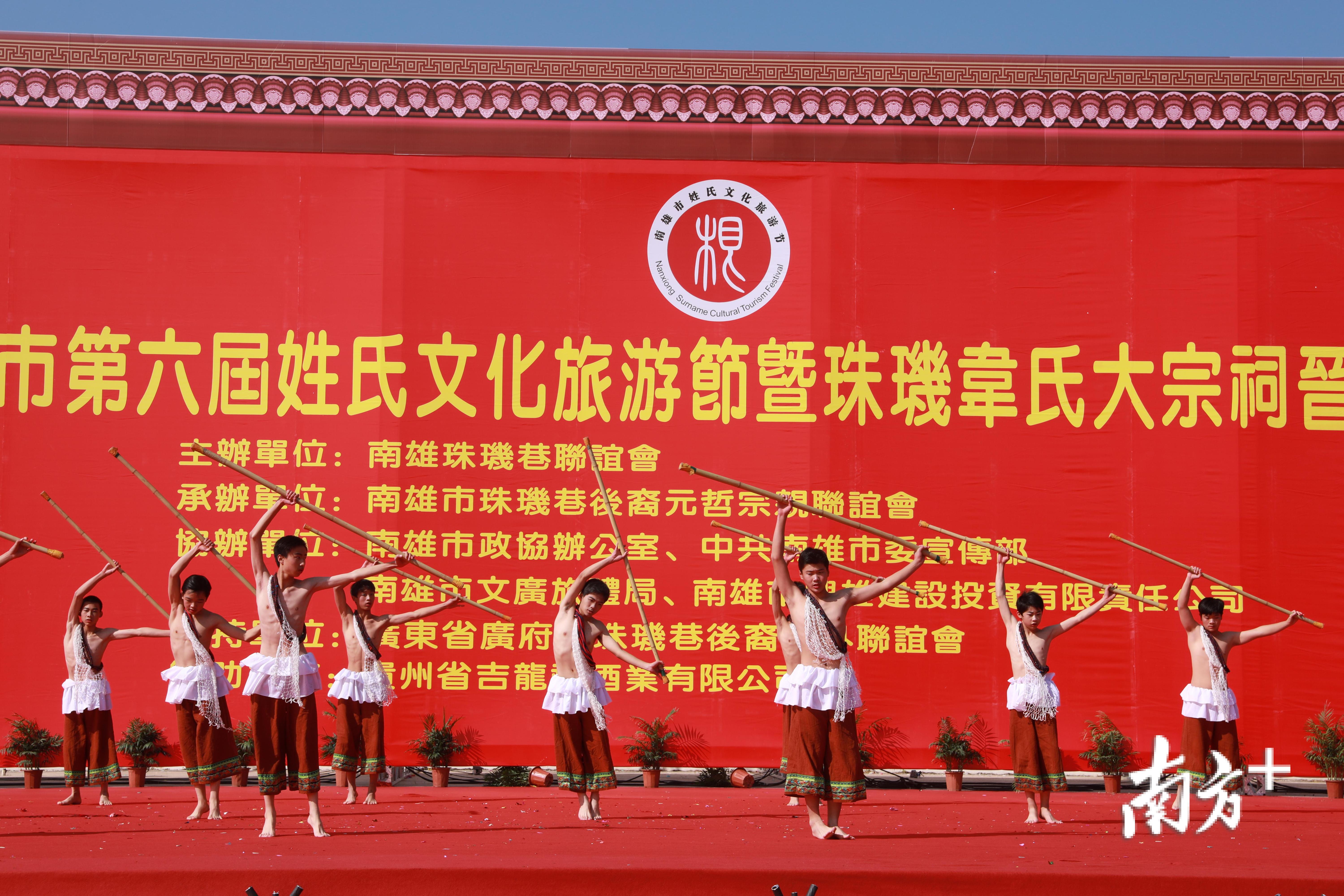 本届姓氏文化旅游节采取姓氏联谊会具体承办的方式,举办了民族文化展演、后裔宗亲交流、姓氏文化研讨、祭祖恳亲、旅游观光、商贸洽谈、宗祠落成晋主庆典等活动。开幕式上,南雄珠玑巷联谊会麾下的15个团体会员单位和48个姓氏联谊会展示了各自的会旗,韦氏宗亲和南雄文艺工作者献上了富有民族特色、地方特色的《芦笙踩堂》《珠玑长歌》等文艺表演。活动还向南雄籍优秀乡贤以及为“姓氏文化名都”作出杰出贡献的各界人士颁发了纪念品。