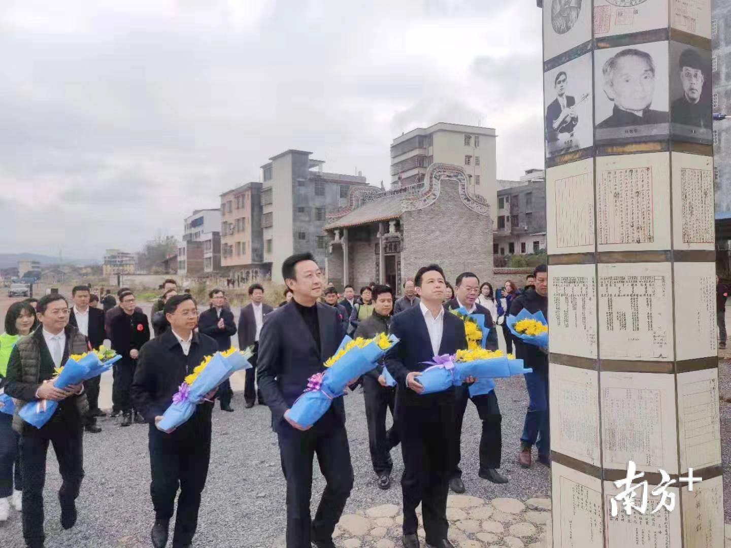 同时,各企业家、校友、研学师生及乐昌市干部群众代表还积极向华南教育历史研学基地(坪石)捐资了206万元,支持华南教育历史研学基地(坪石)建设。省、市有关领导,各有关大学院校领导、韶关校友会代表,以及学生代表在纪念柱前坪石先师献花,并前往天文台旧址共同种下乐昌含笑纪念树。