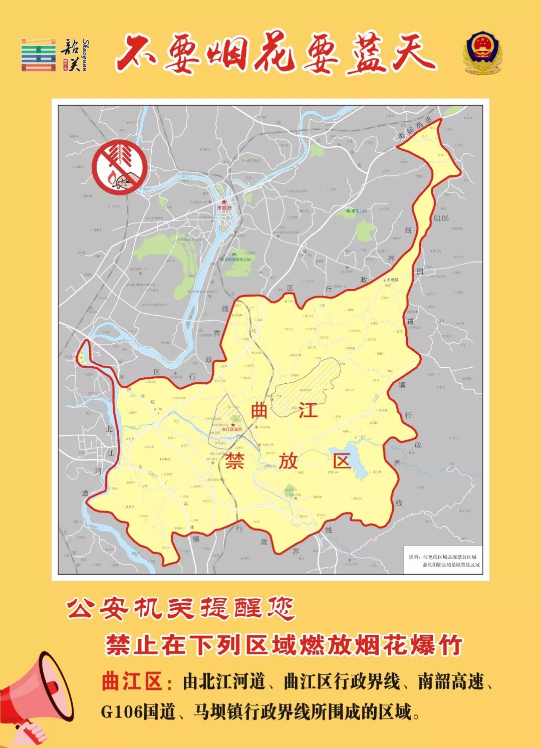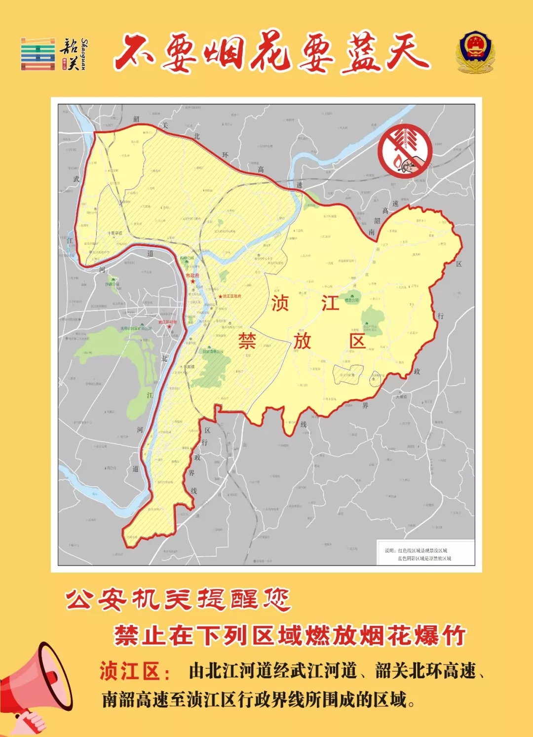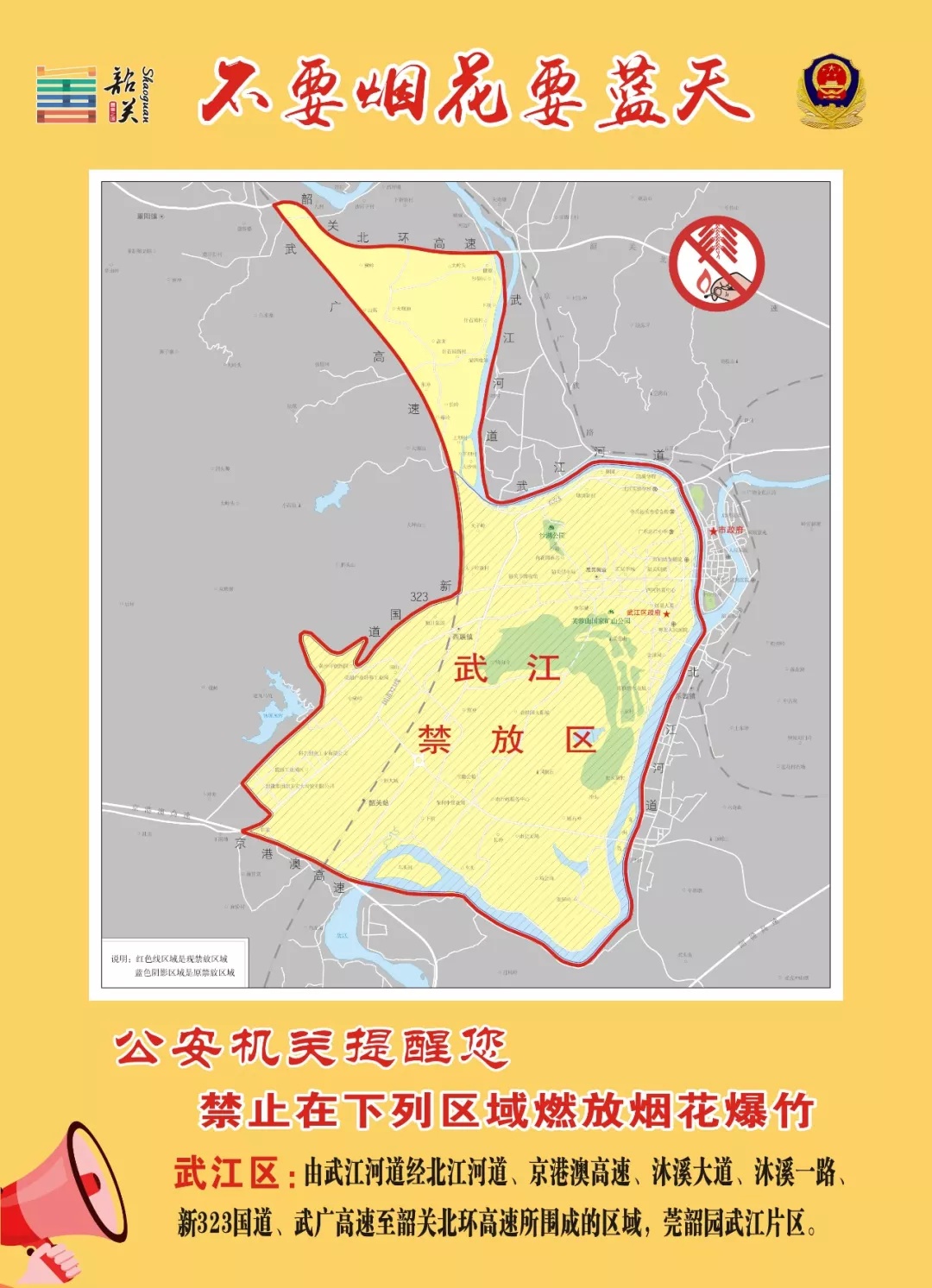 以上区域已包含《韶关市烟花爆竹燃放安全管理条例》第十九条规定的禁放区域。