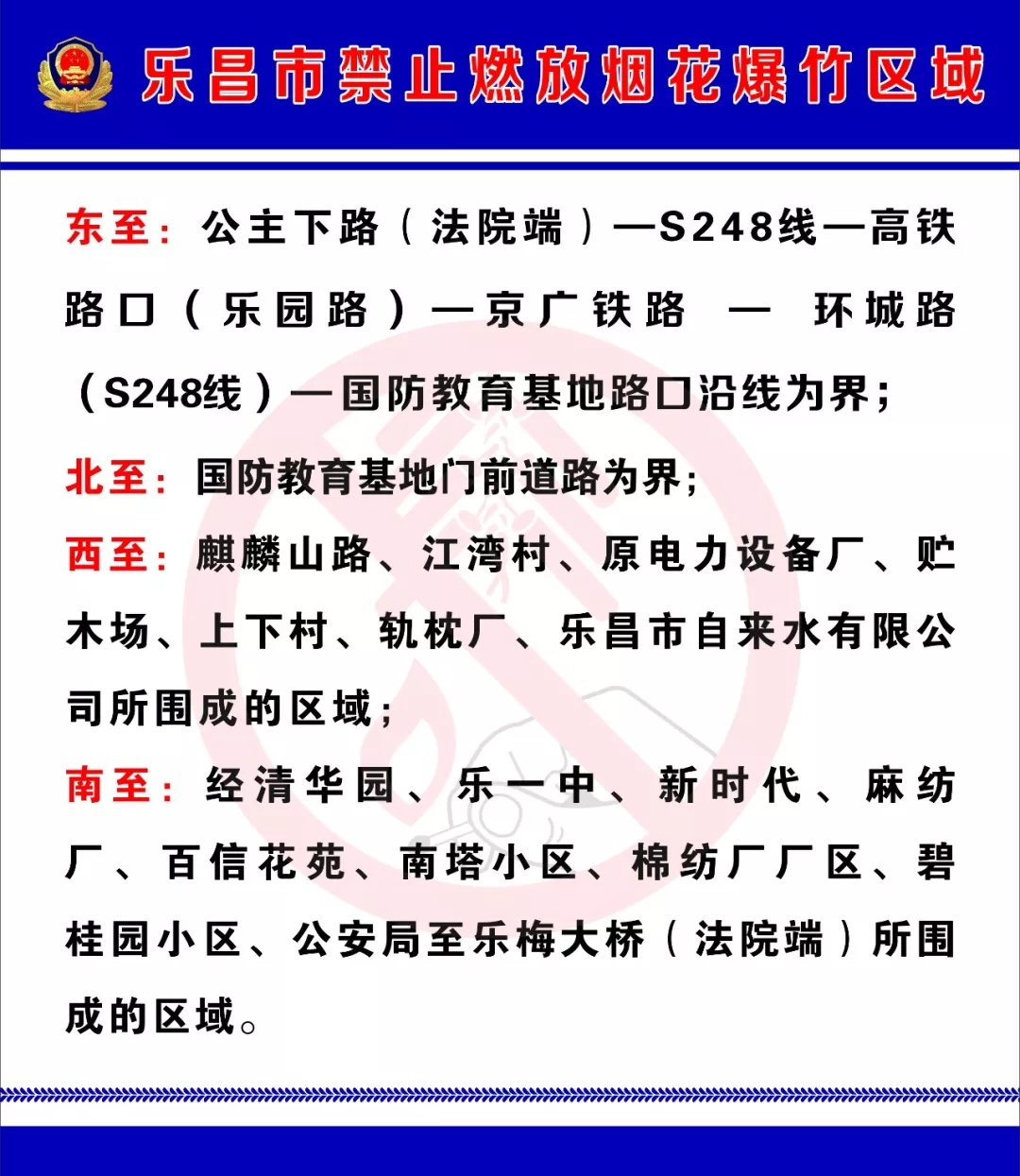 自本通告实施之日起全时段禁止燃放烟花爆竹。