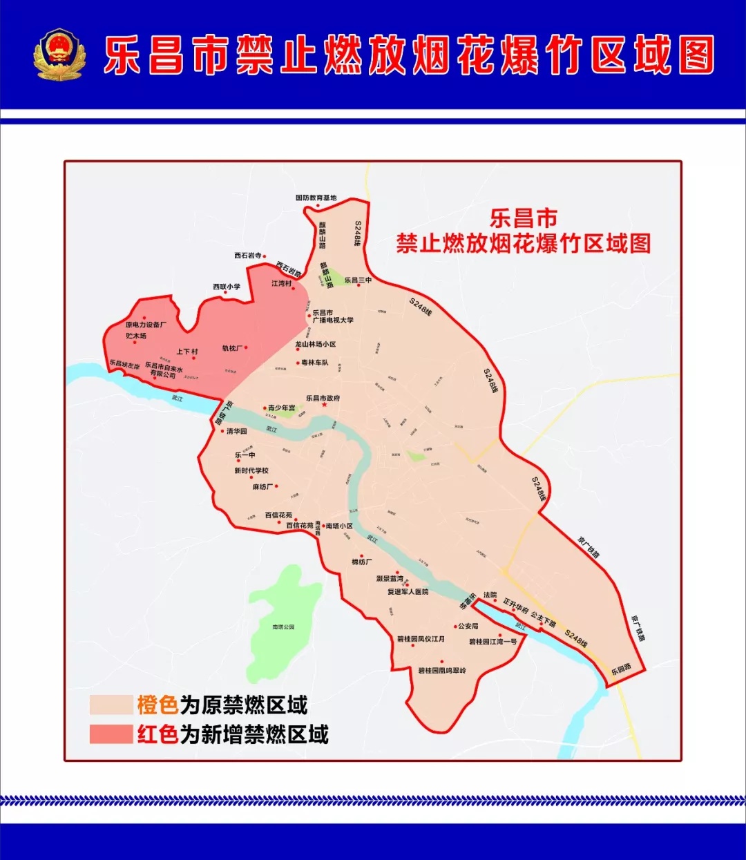 (二)南面以省道S246线与G106国道交汇点(即城南社区前红绿灯)至省道S246线大岭红绿灯路口为界(其中包括省道S246线以南的城南村委会上、下渡落村为禁放区)。