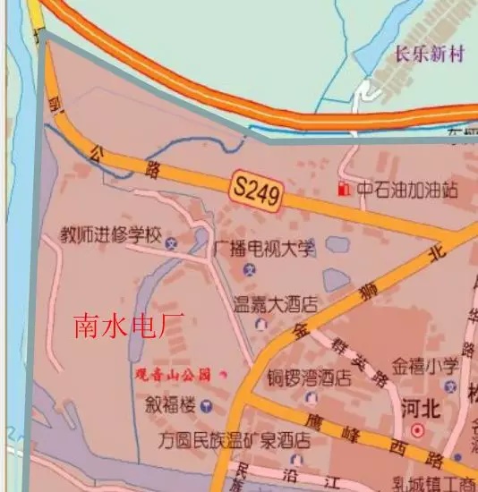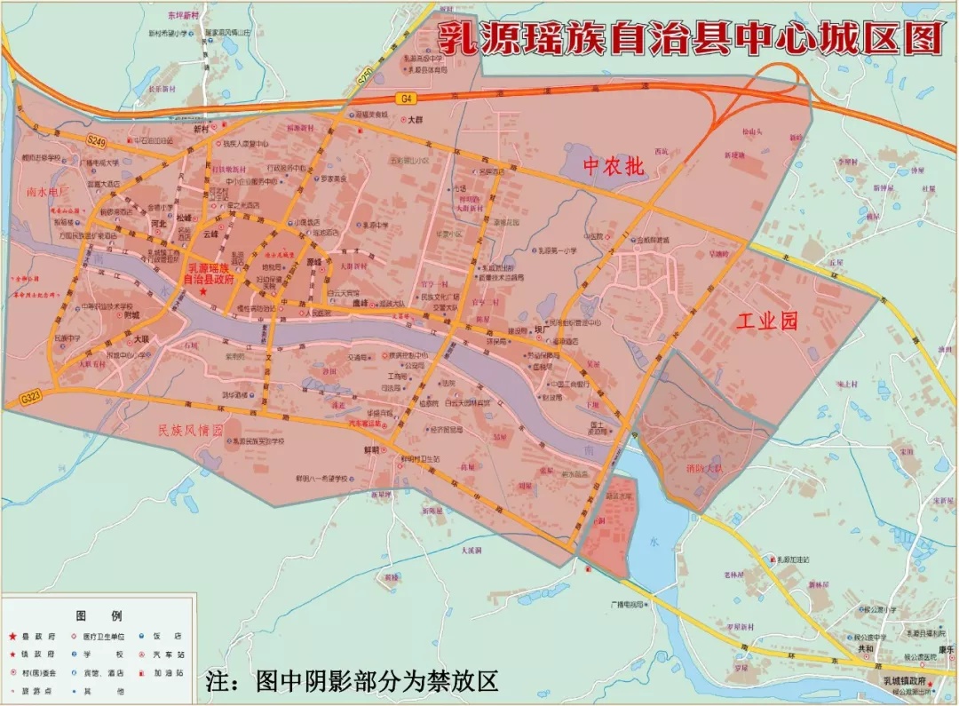 (二)乳源化工园区(乳源县新材料产业园)(东阳光)、富源工业园、消防大队、中农批、世界过山瑶风情园、党校、金狮公园、体育馆、南水电厂及家属区四至范围。